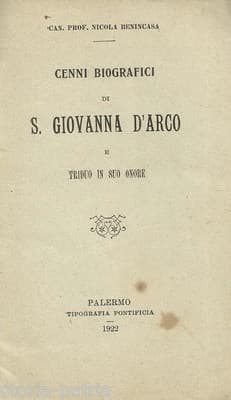 1922 Biografia E Triduo Di Santa Giovanna d'Arco, Nicola Benincasa Palermo