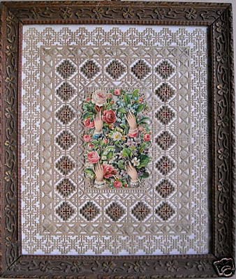Ricamo Antico In Carta Intagliata Con Cromolitografia E Cornice Liberty