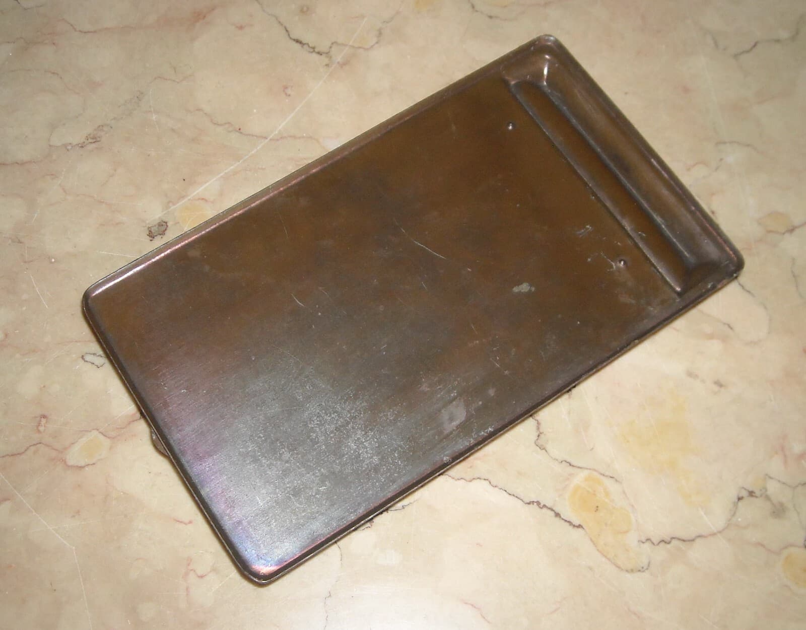 Vassoio Decorativo In Metallo Grigio, Stile Liberty