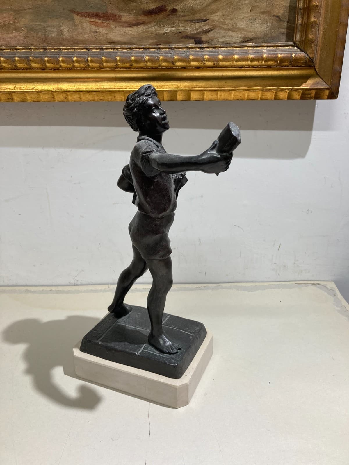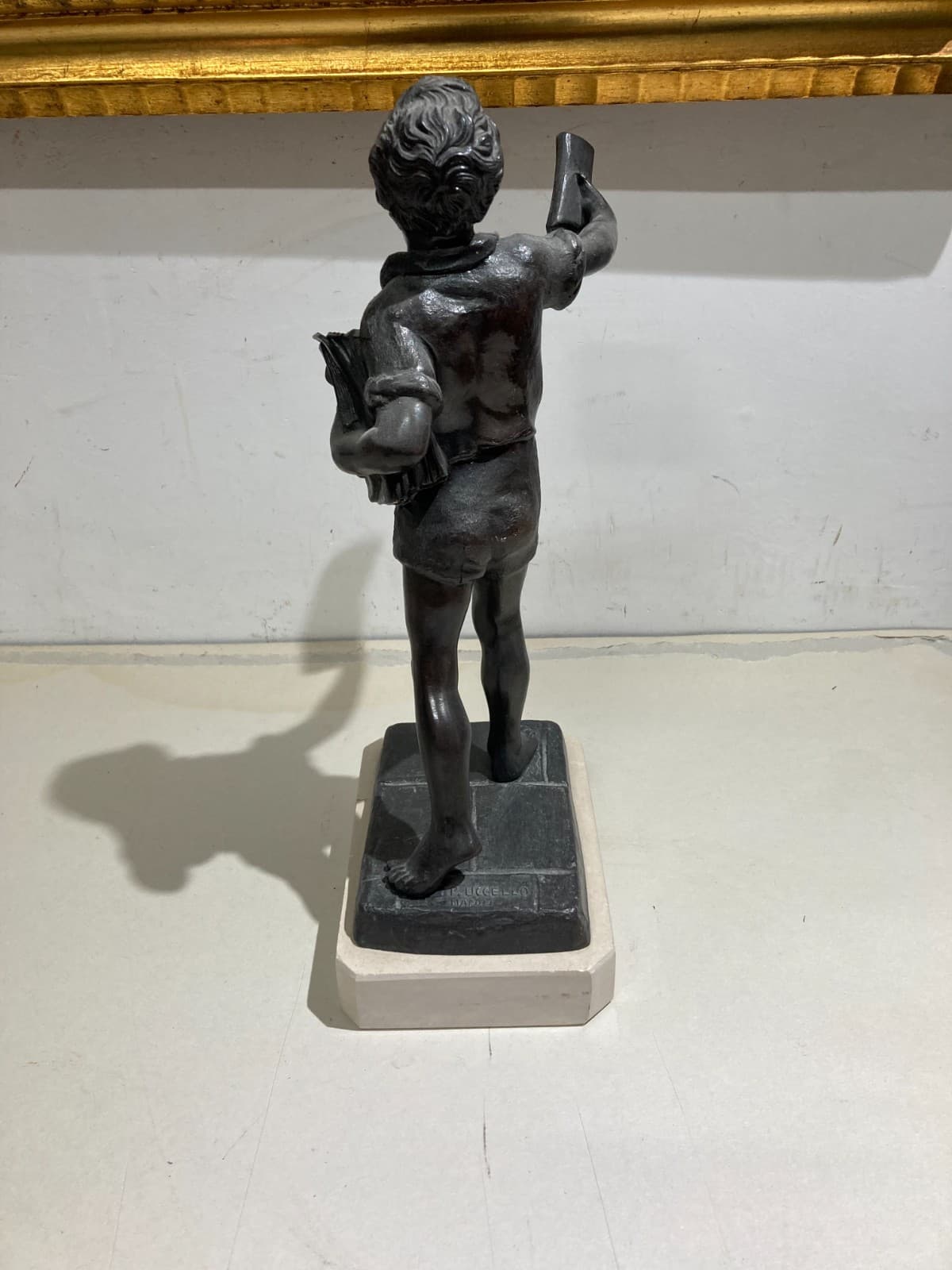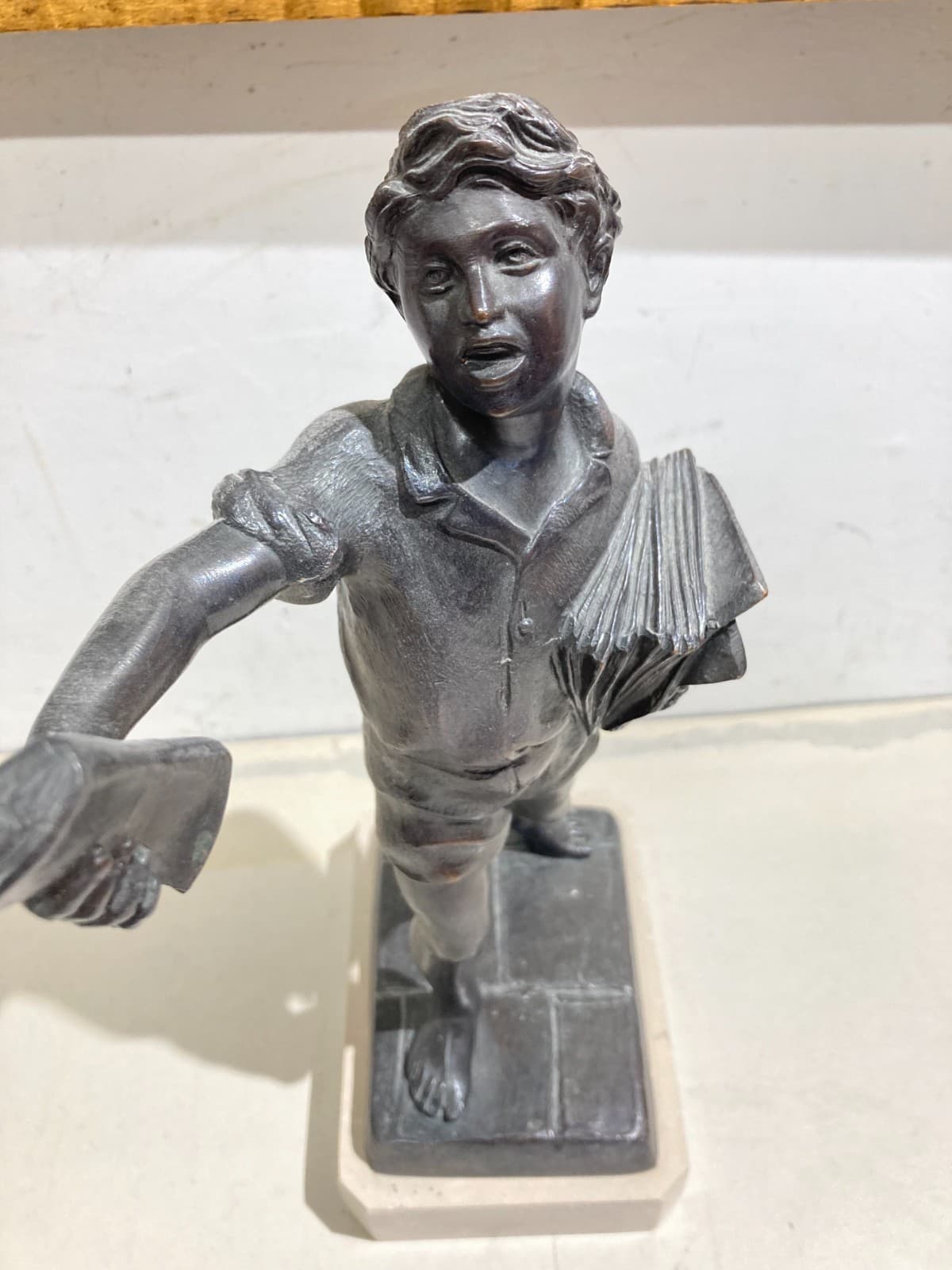 Lo Strillone (venditore Di Giornali). Scultura Decorativa In Metallo Brunito. Napoli