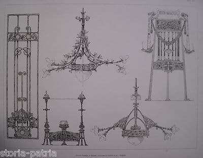 Arte E Arti Decorative. Lampade E Lampadari: Modelli. Litografia Jules Paullet, Grande Stampa Dell'800