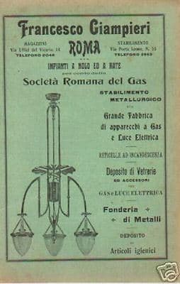 Lampade, Lampadari, Illuminazione Elettrica E A Gas, Roma, Francesco Giampieri