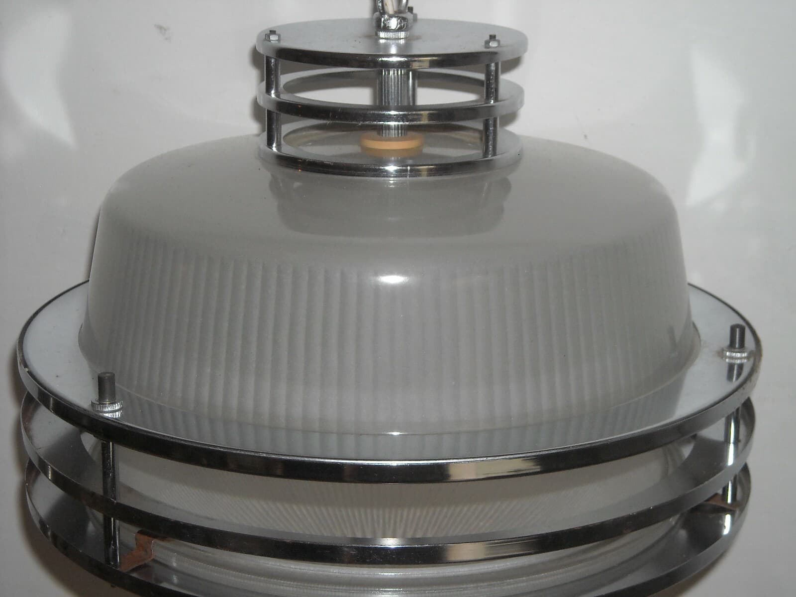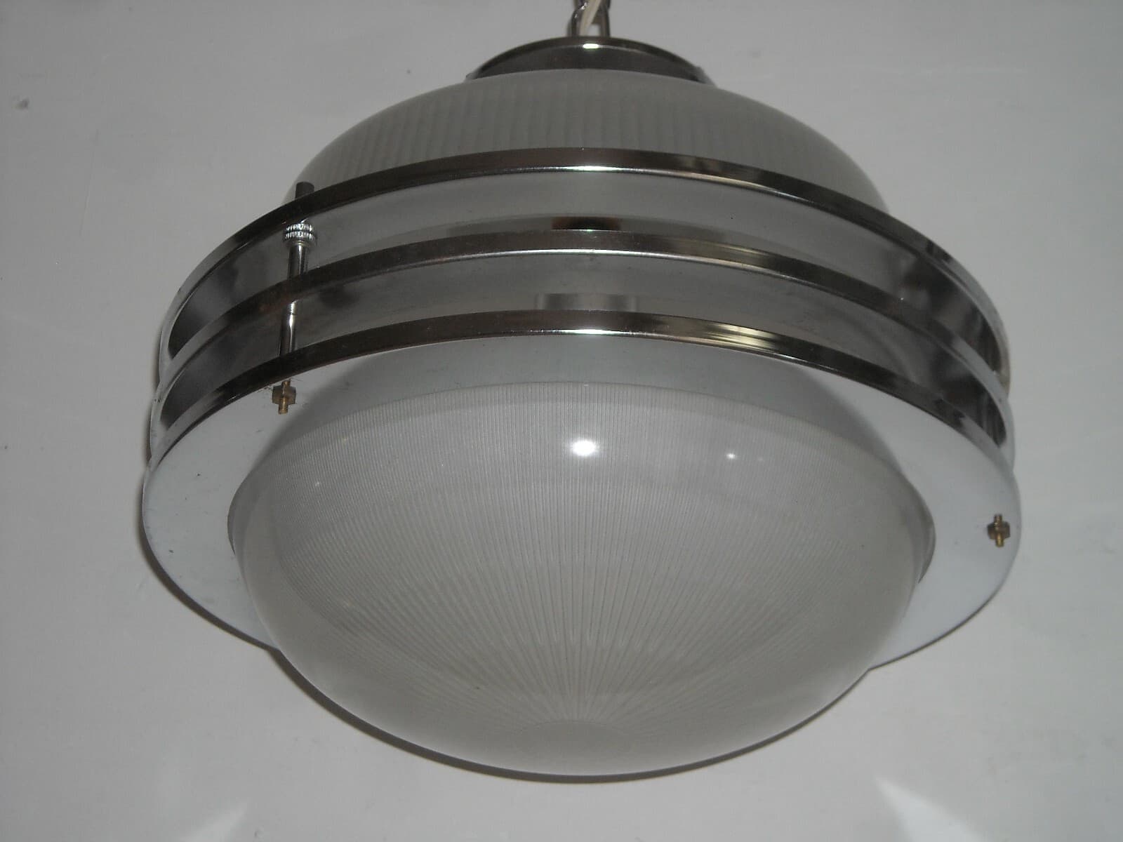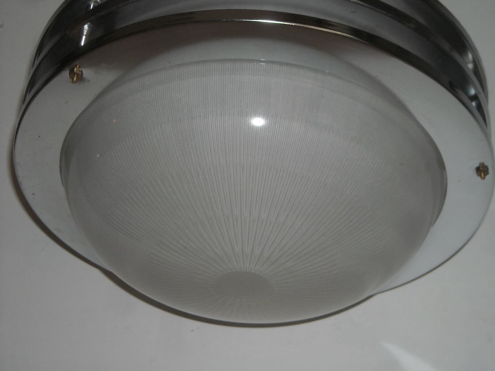 Lampada Plafoniera In Vetro Opalescente E Metallo Cromato