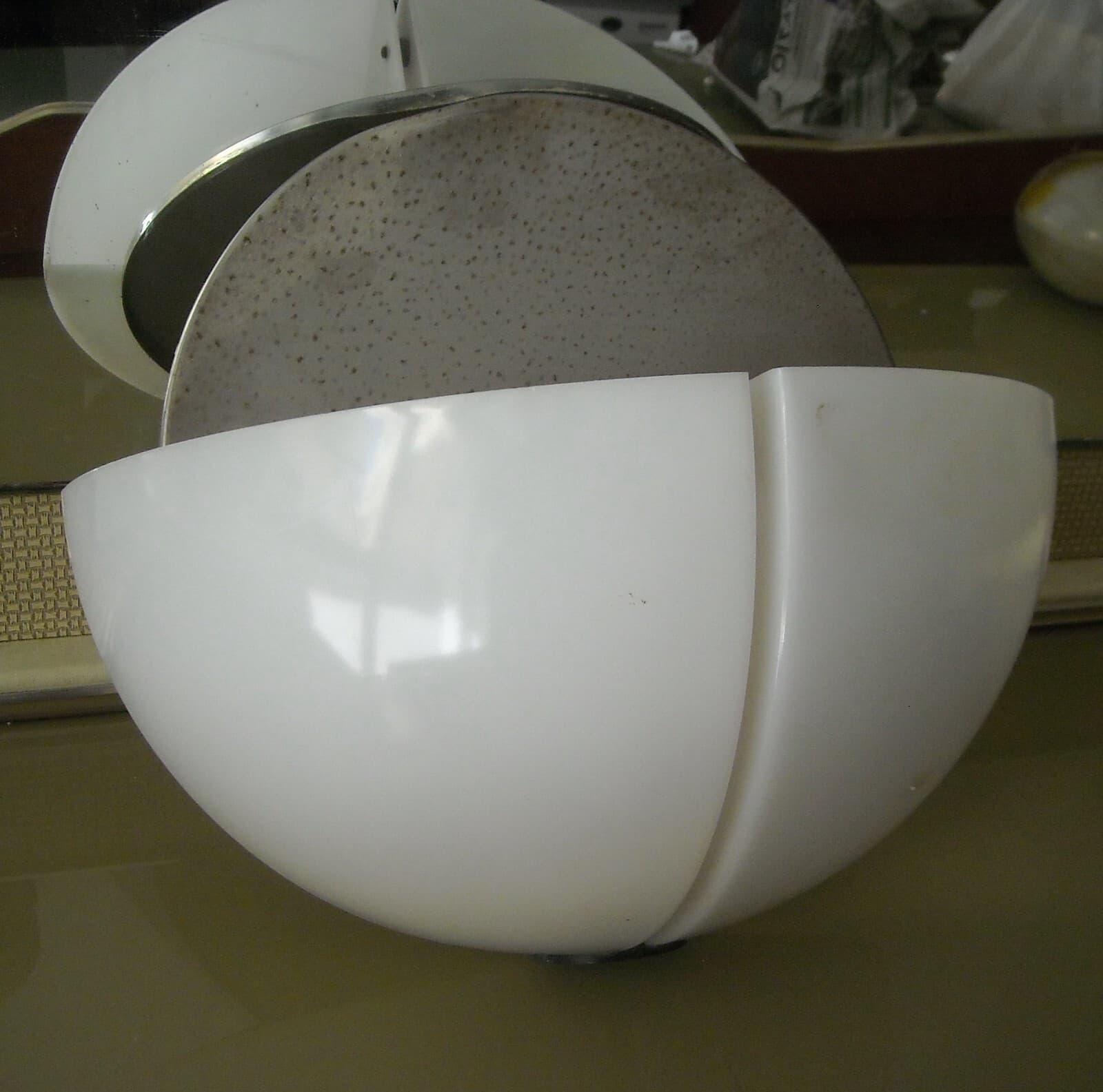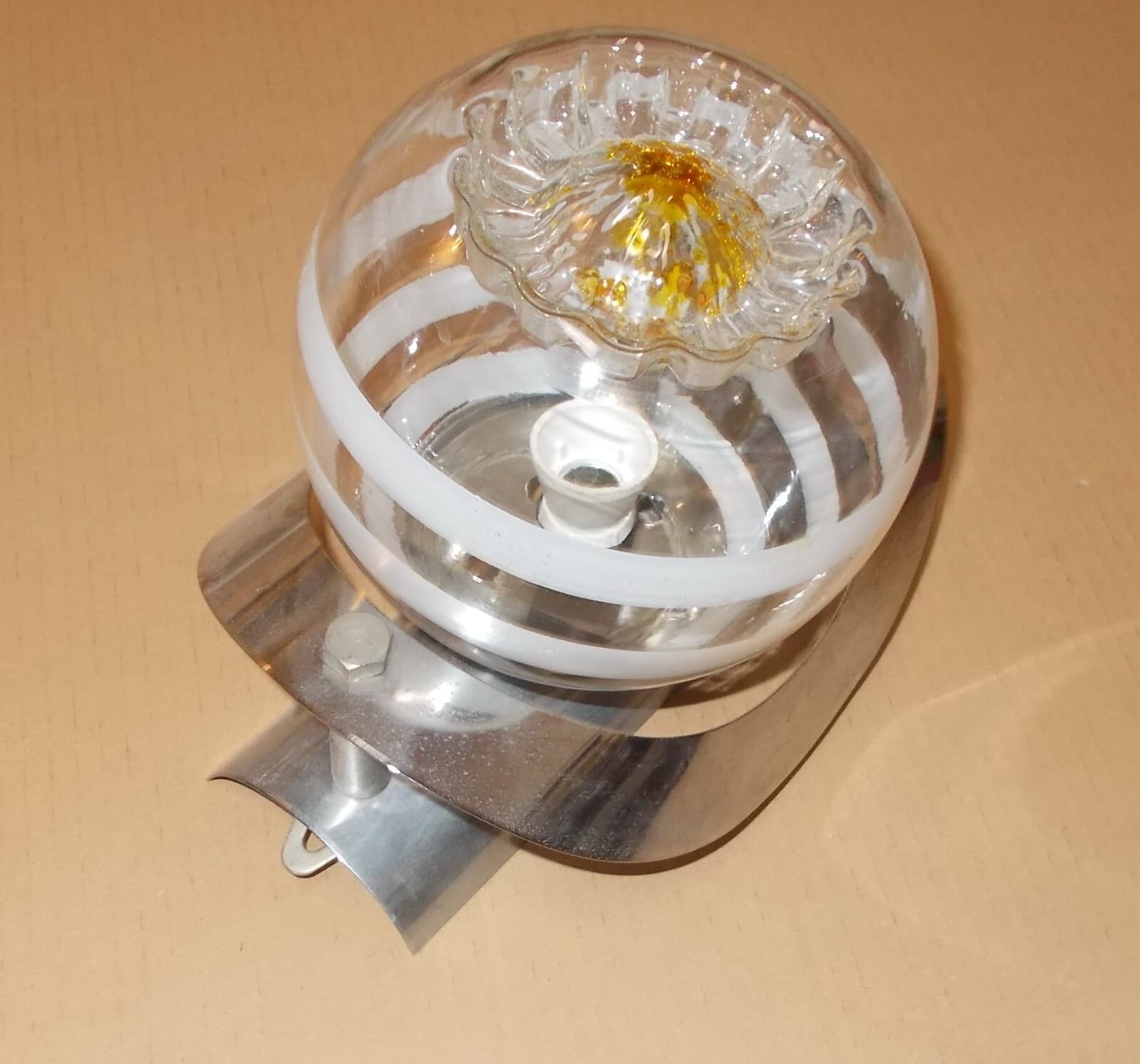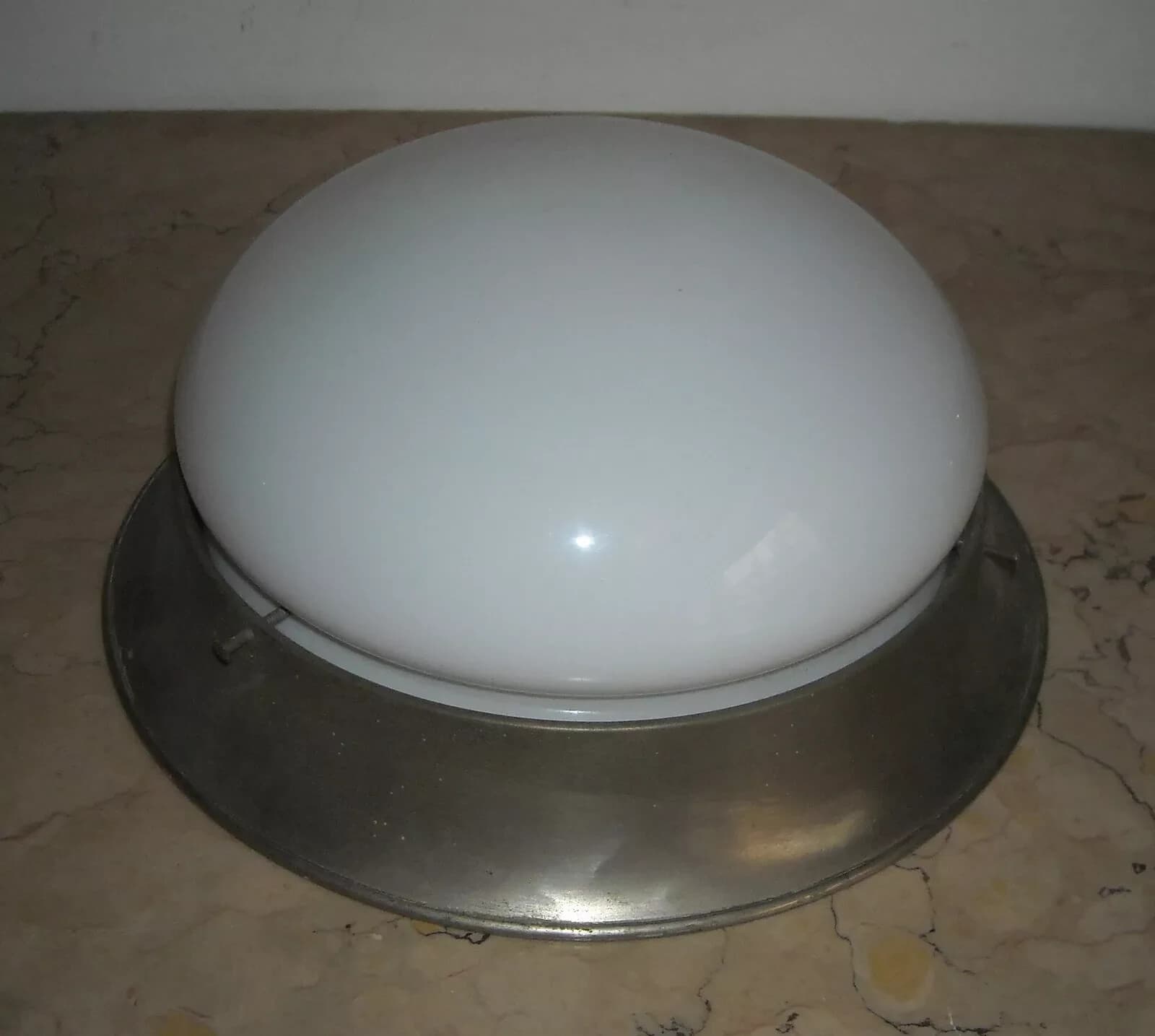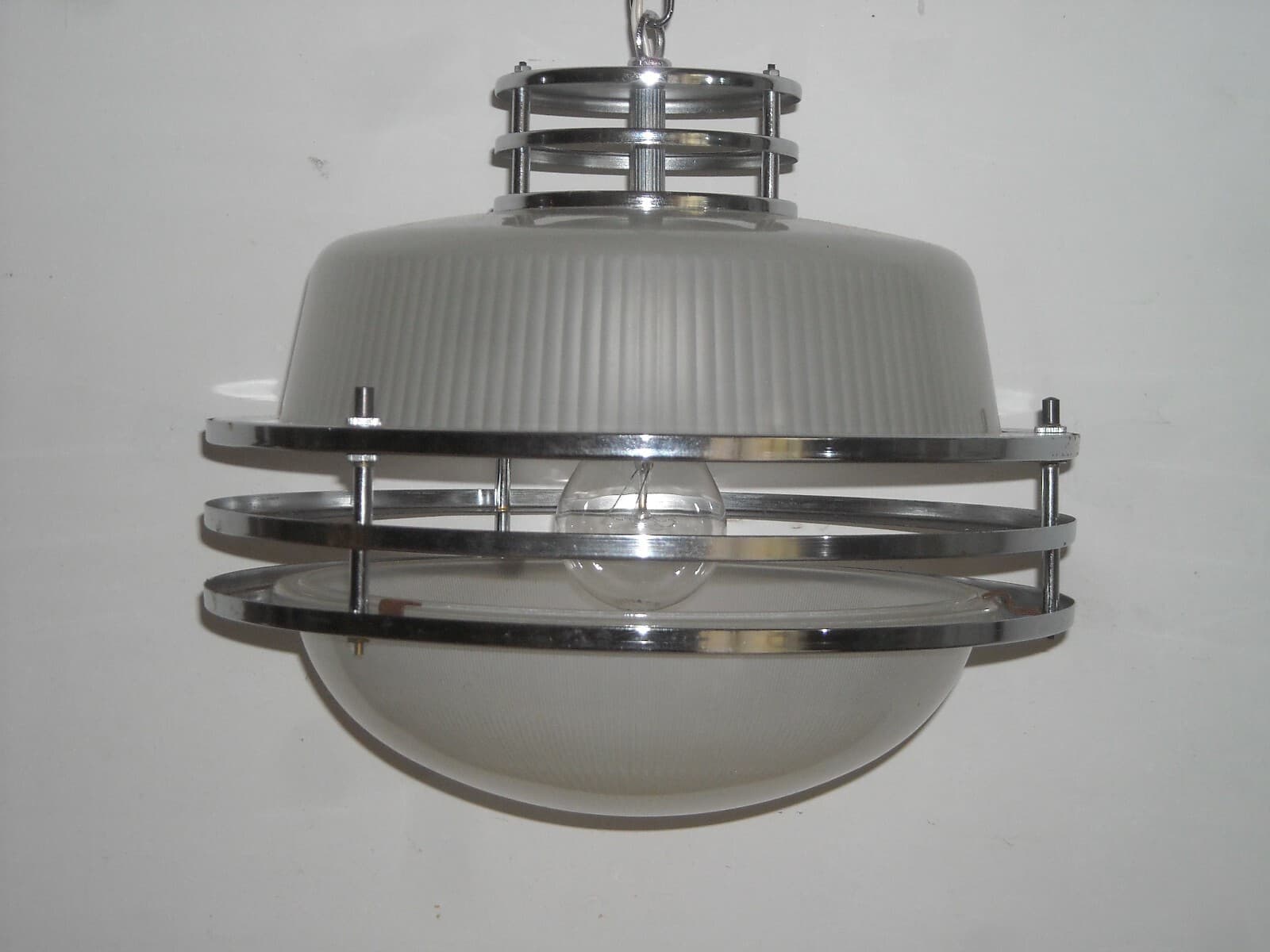 Lampada Plafoniera In Vetro Opalescente E Metallo Cromato