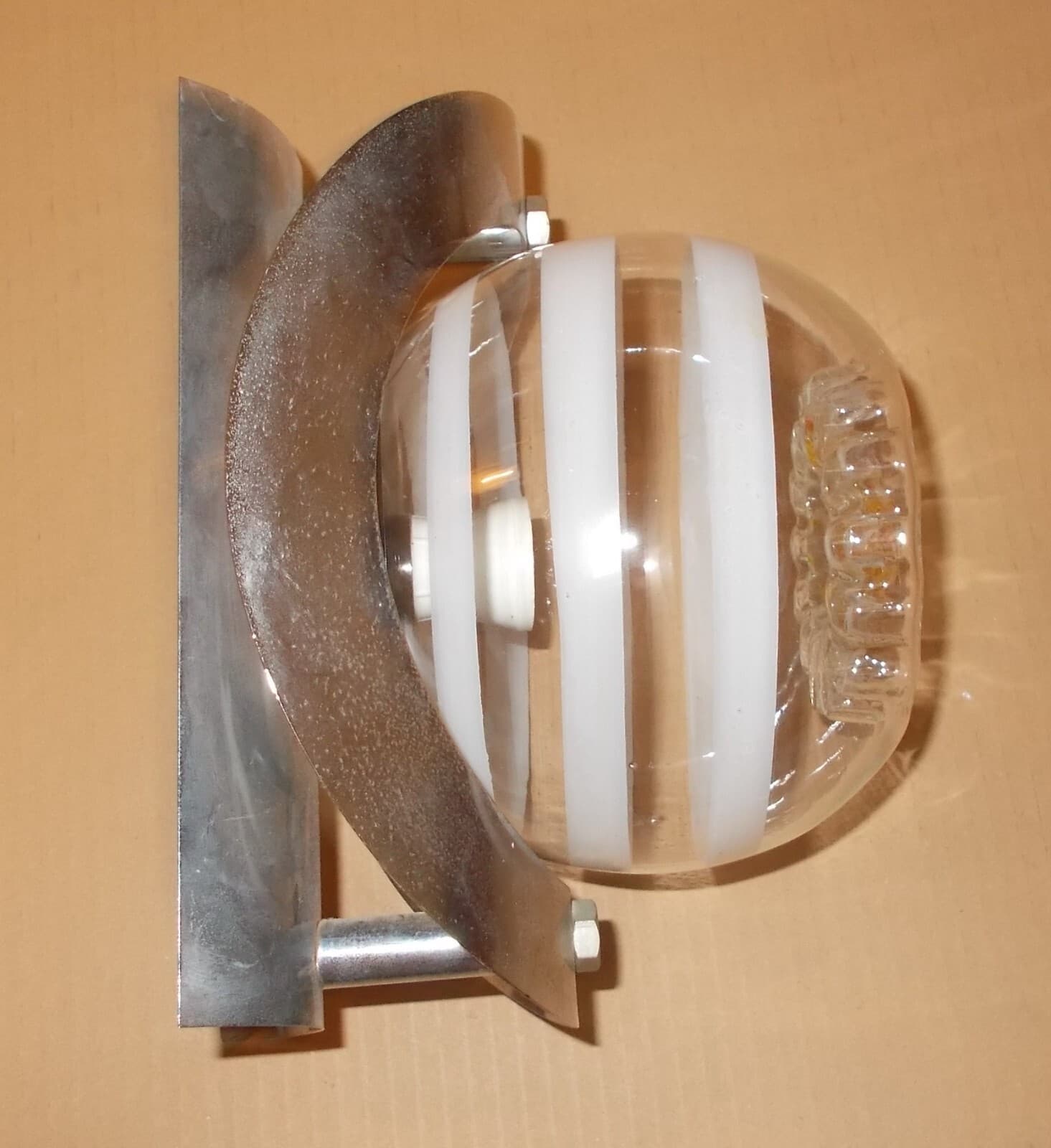 Modernariato Design Lampada Da Parete Applique In Vetro Modellato d'Epoca