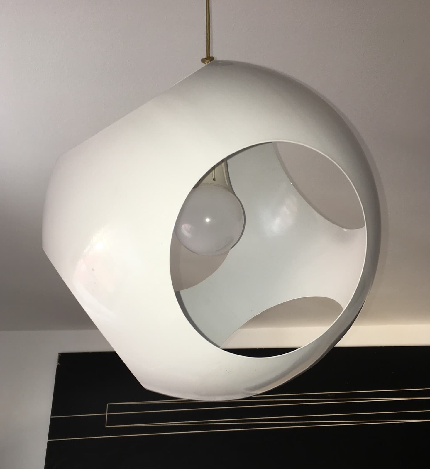 Lampada A Sospensione Sferica Space Age In Metallo Laccato