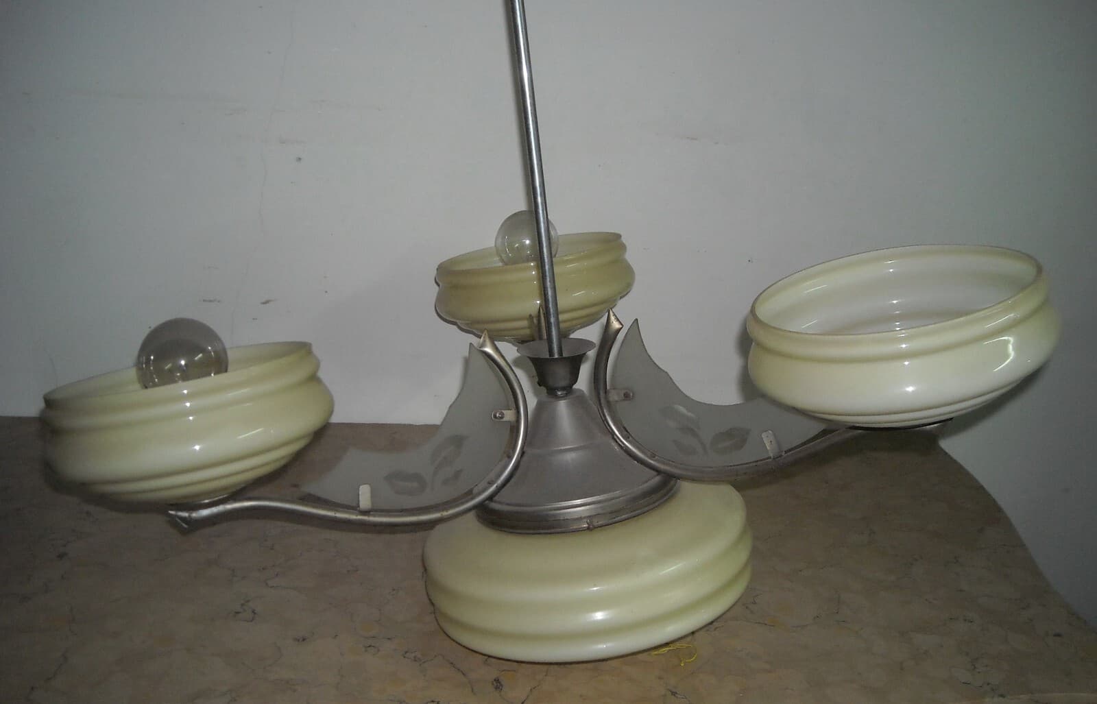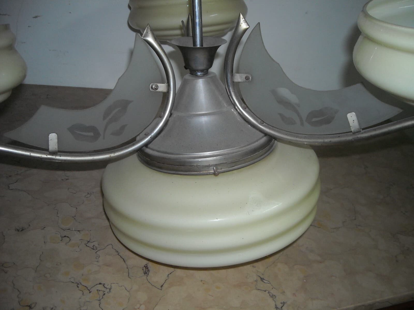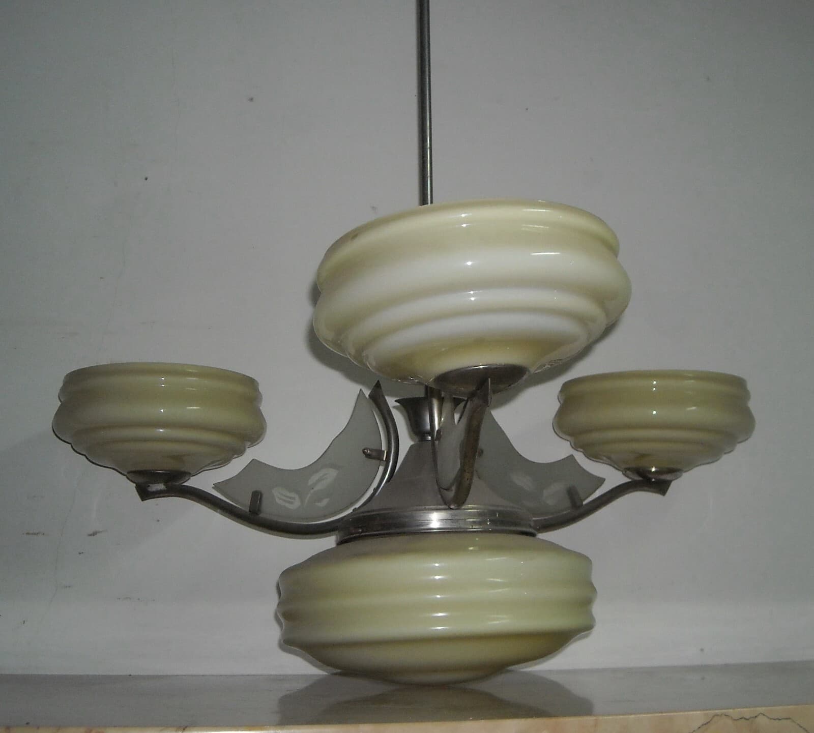 Lampadario Déco In Vetro Opalescente E Metallo Cromato