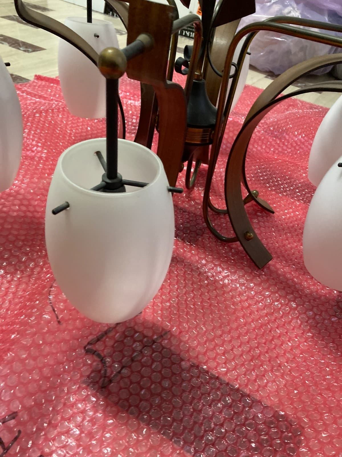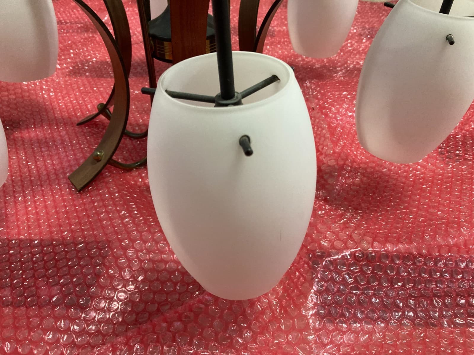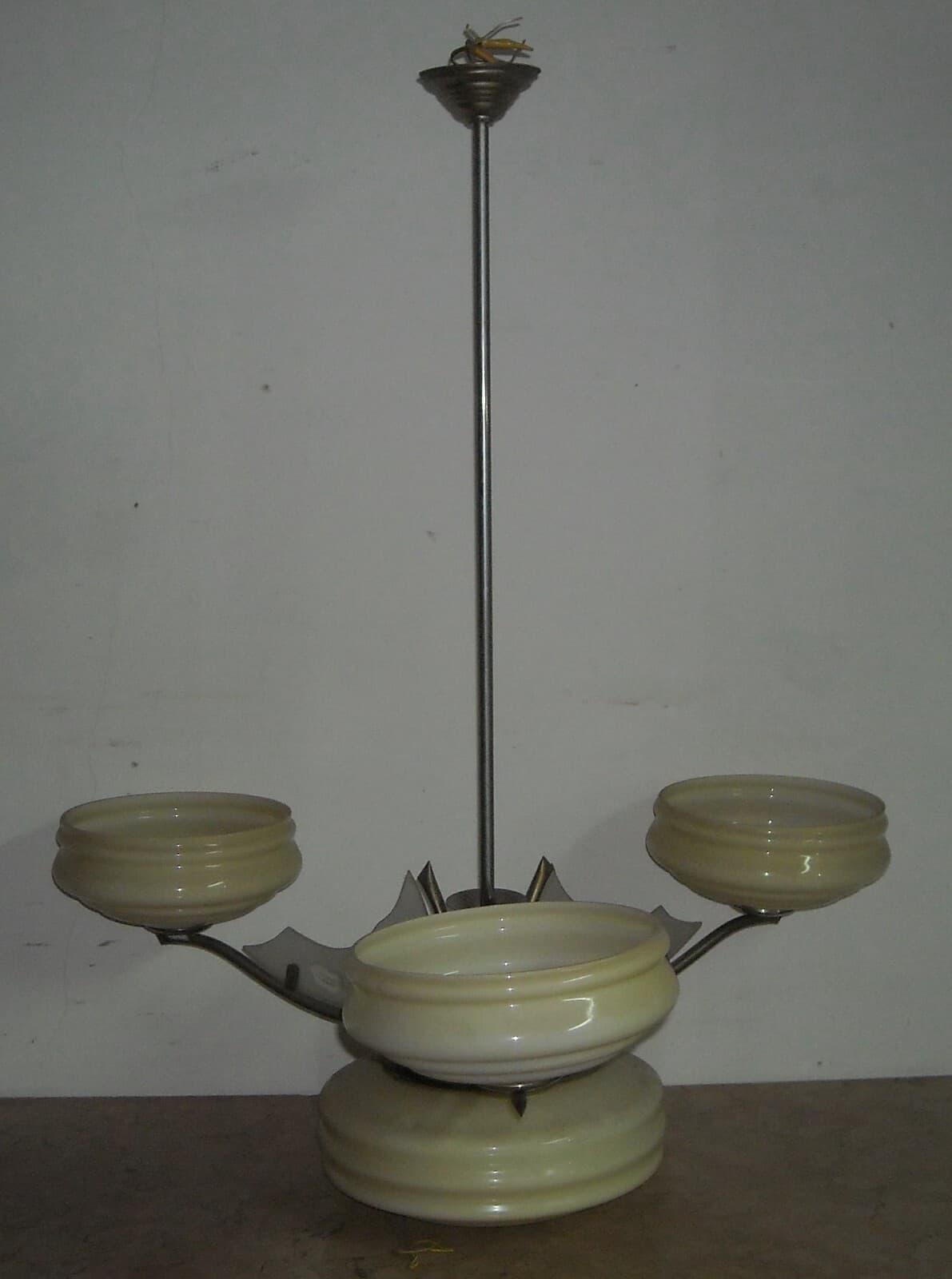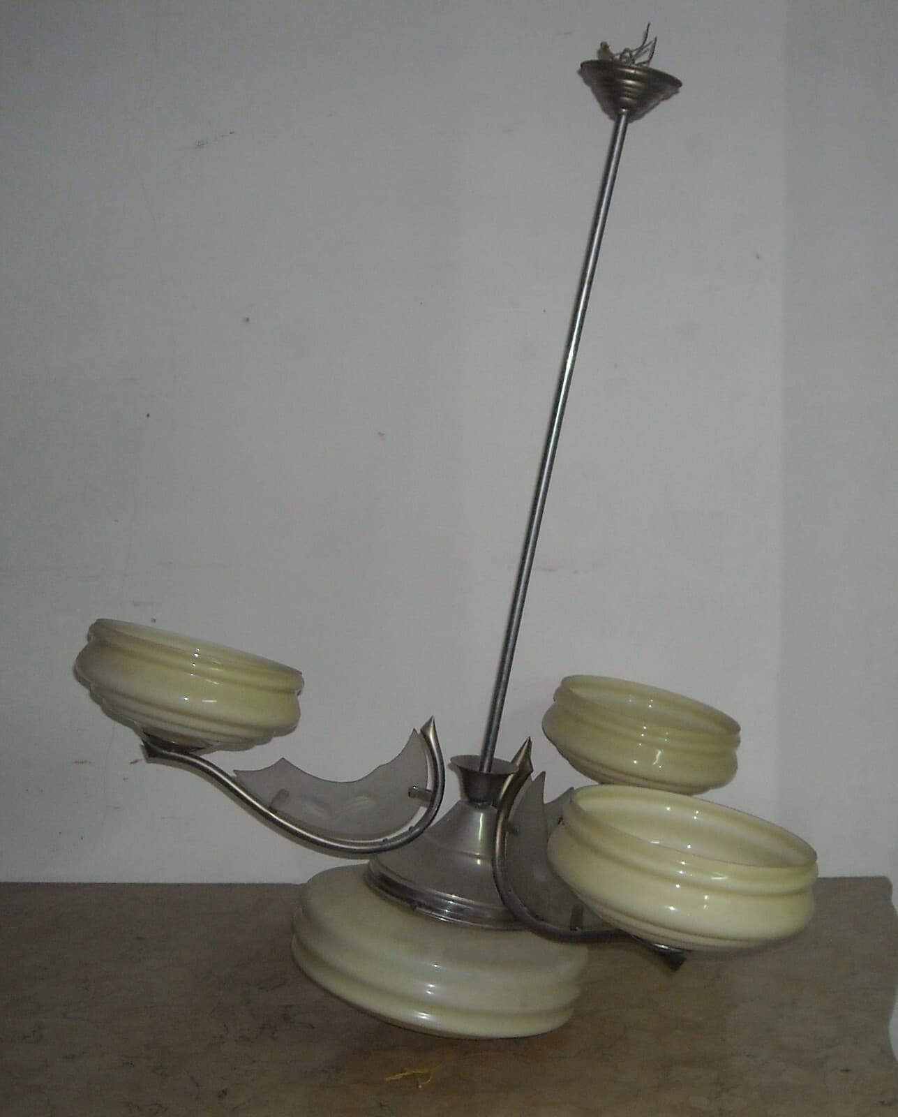 Lampadario Déco In Vetro Opalescente E Metallo Cromato