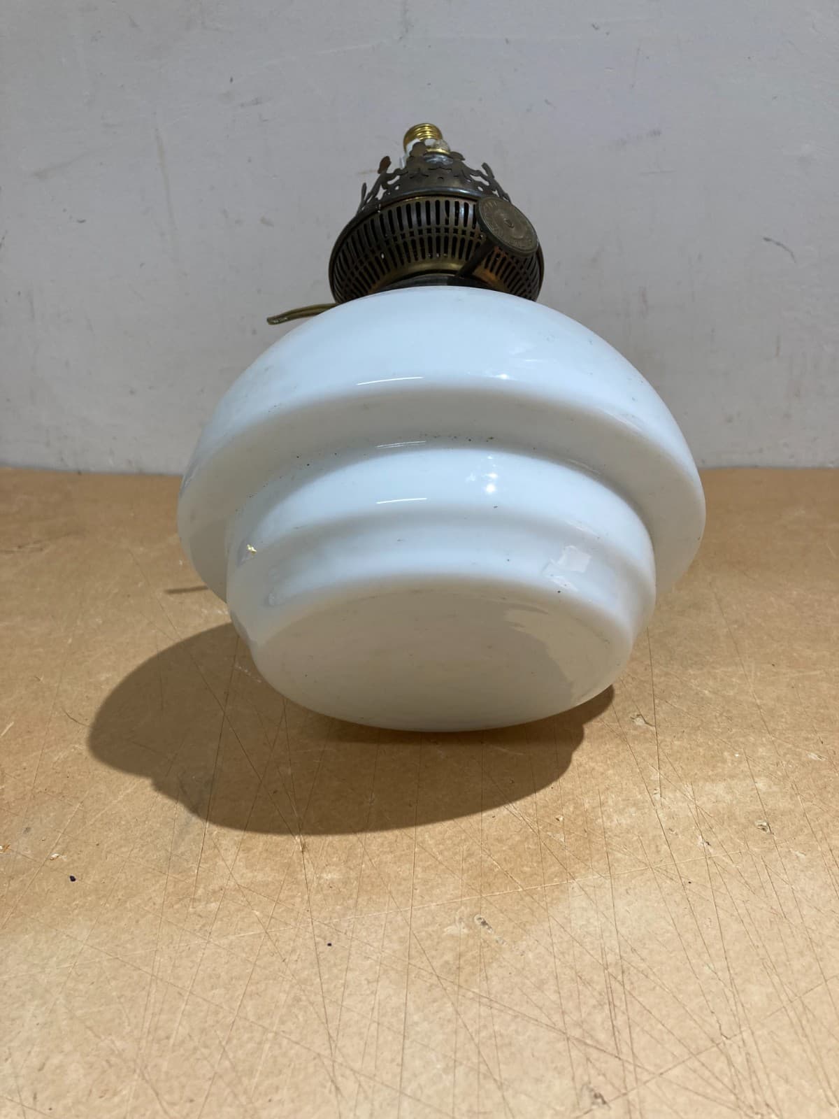 Antica Lampada In Vetro Opaline Bianco, Lume Da Collezione Rond Parisien