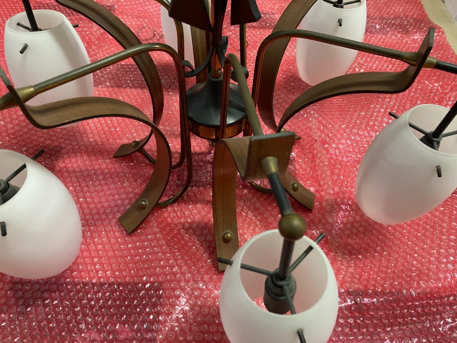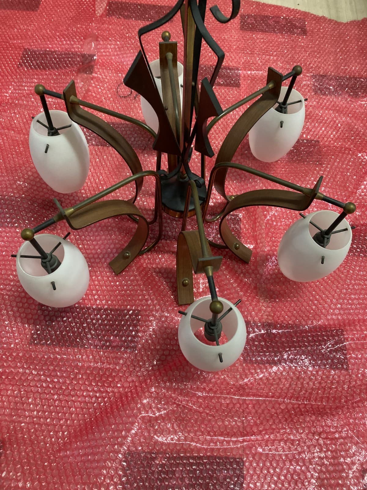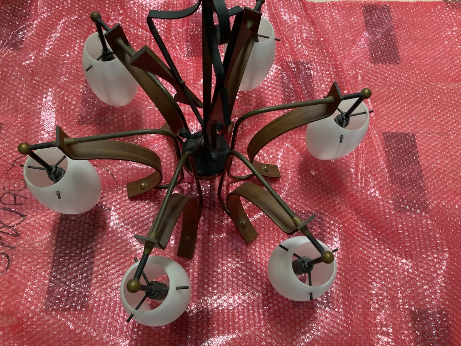 Lampadario Anni '70 In Legno Laccato Aragosta E Vetro