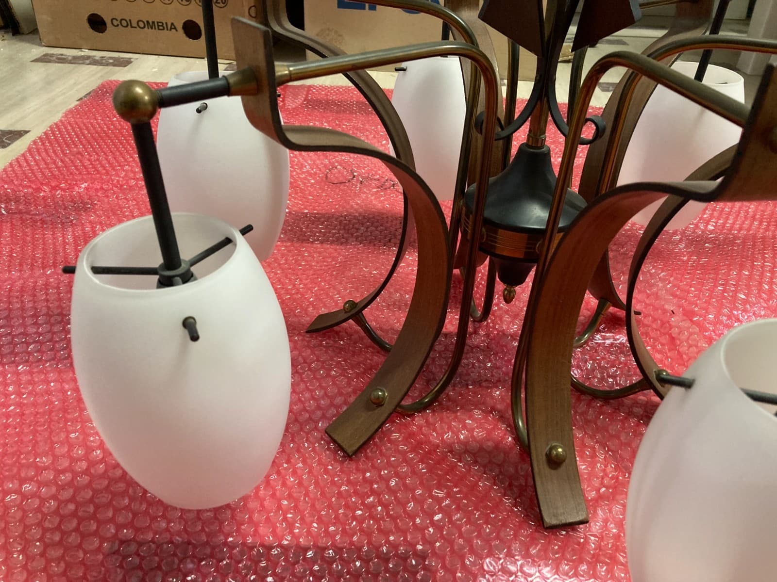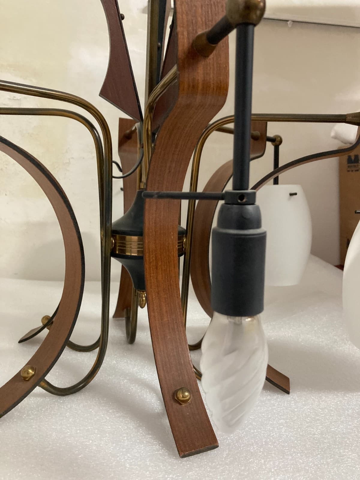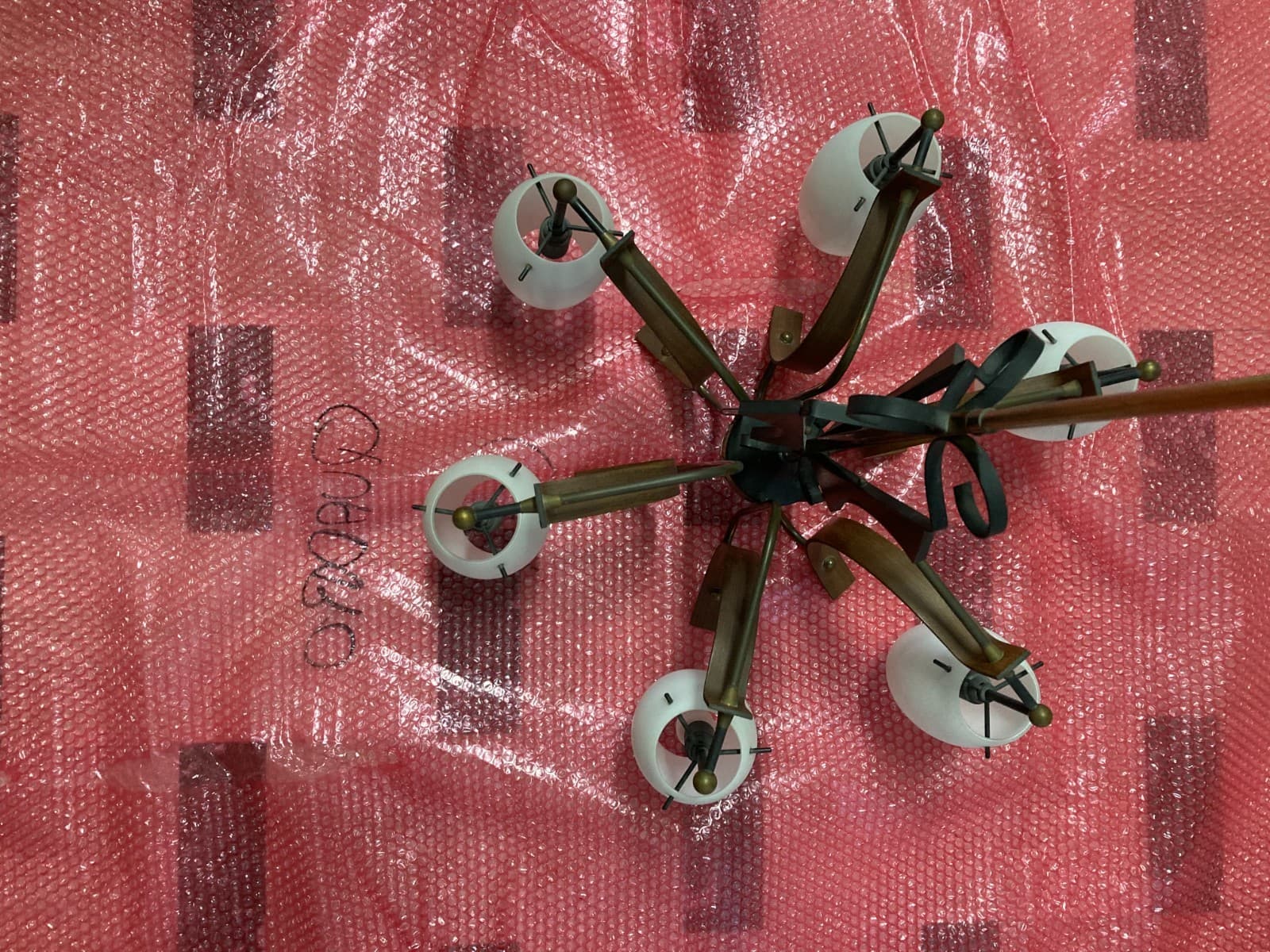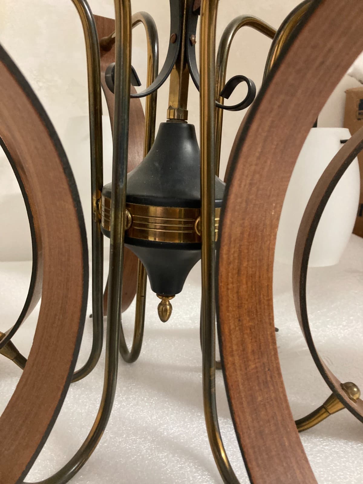 Lampadario Anni '70 In Legno Laccato Aragosta E Vetro