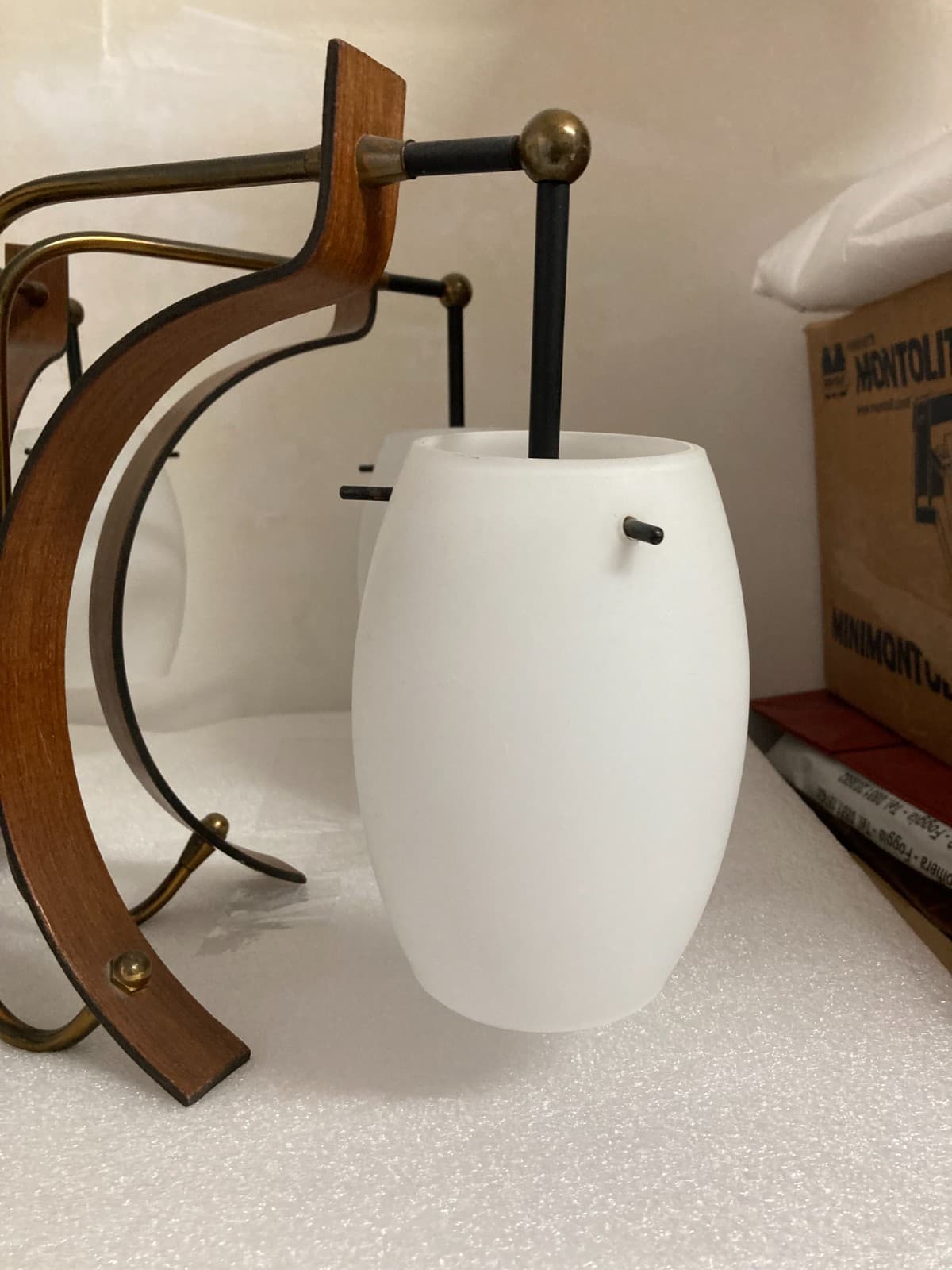 Coppia Di Appliques In Vetro E Legno, Era Gio Ponti