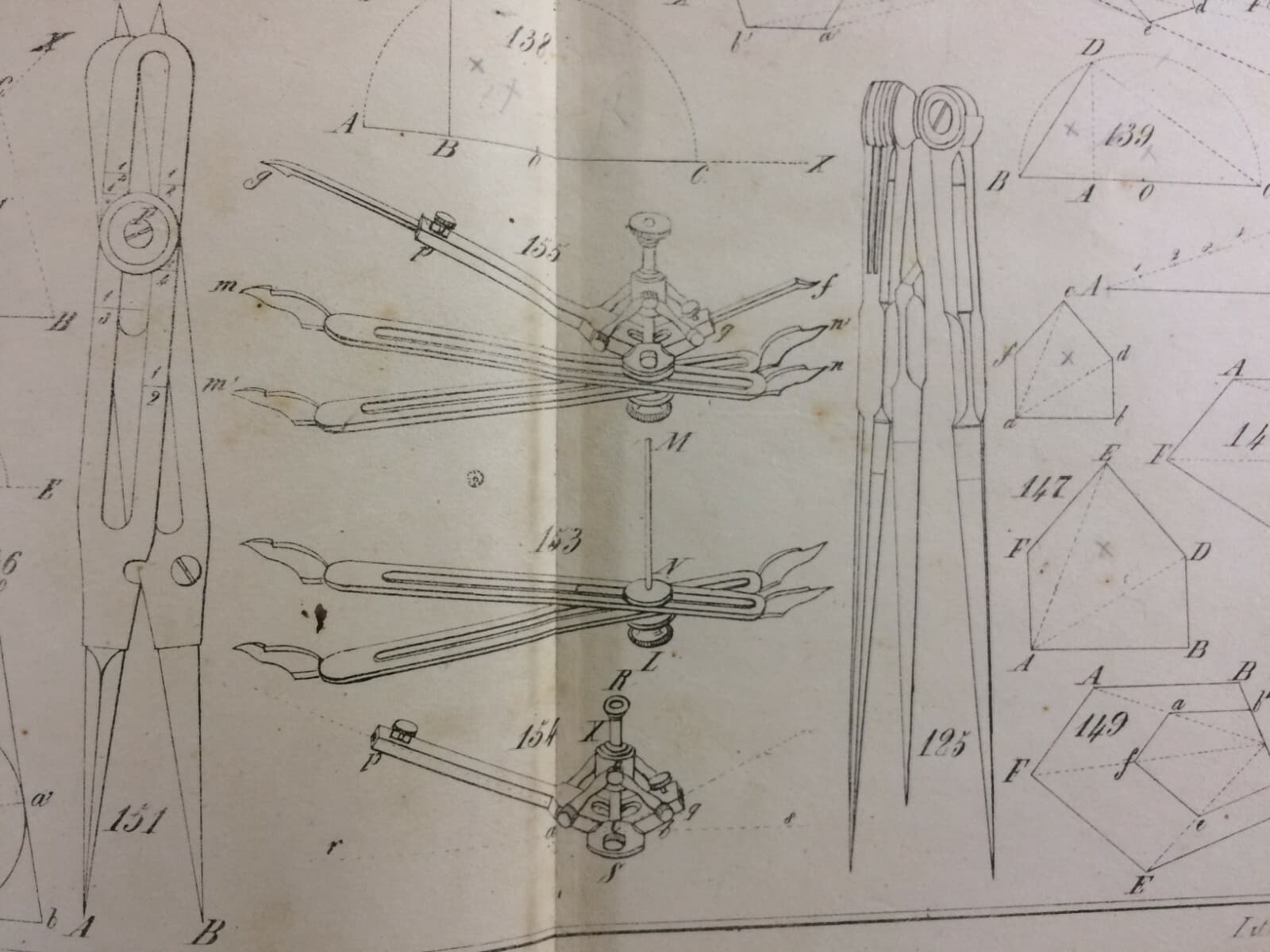 Arte, Disegno, Architettura, Ingegneria, Strumenti, Compasso: Antica Stampa Motta, 1868
