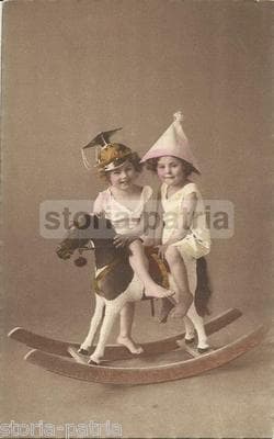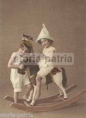 Giochi Di Bimbe Cavallo A Dondolo Cartolina d'Epoca Decorativa