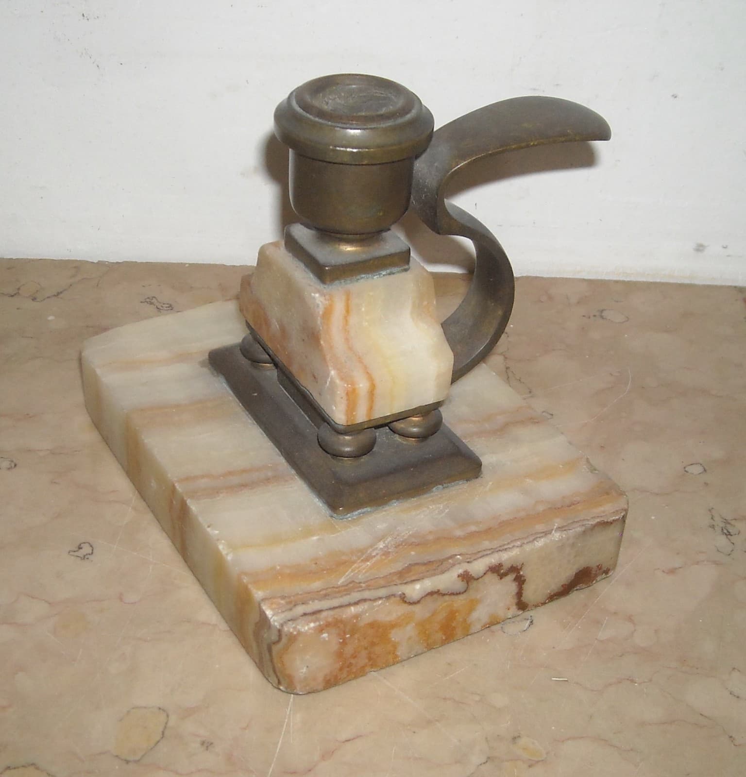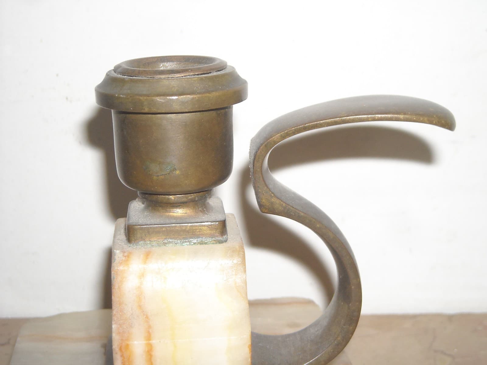 Soprammobile Artistico: Bugia Porta Candela In Marmo E Bronzo