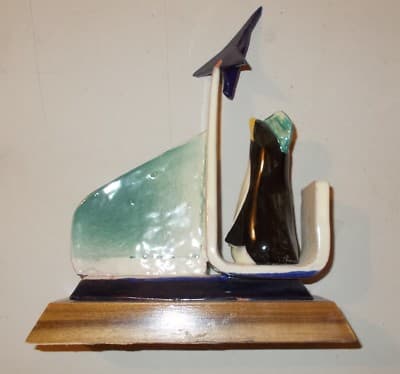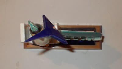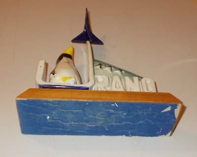 Soprammobile Pubblicitario: Scultura In Ceramica Con Pinguino E Aereo