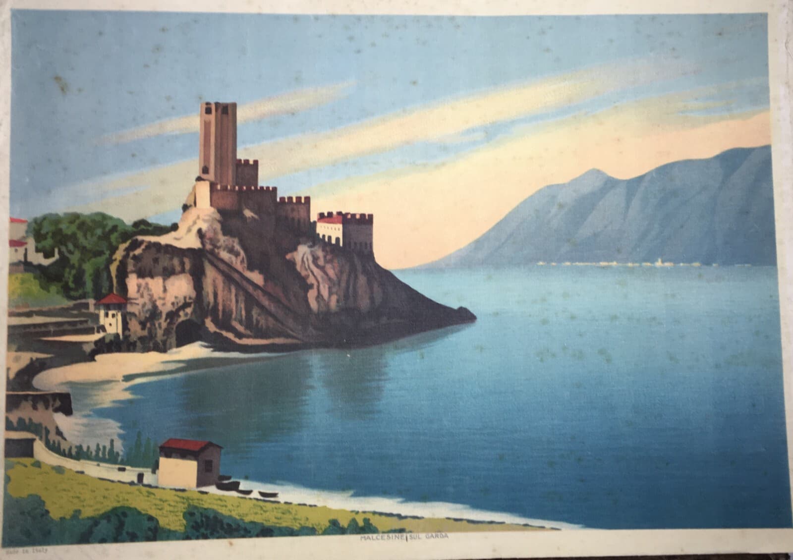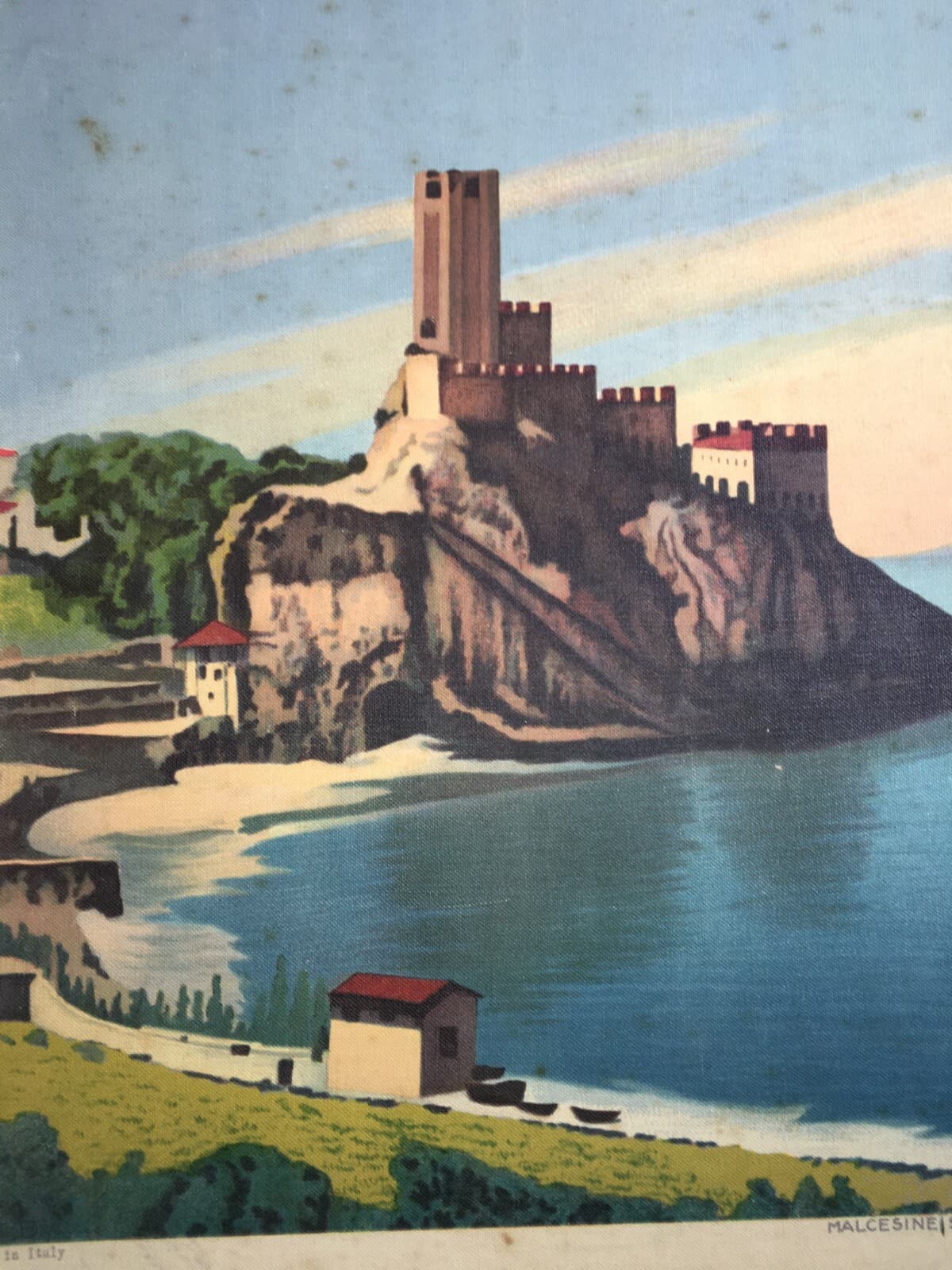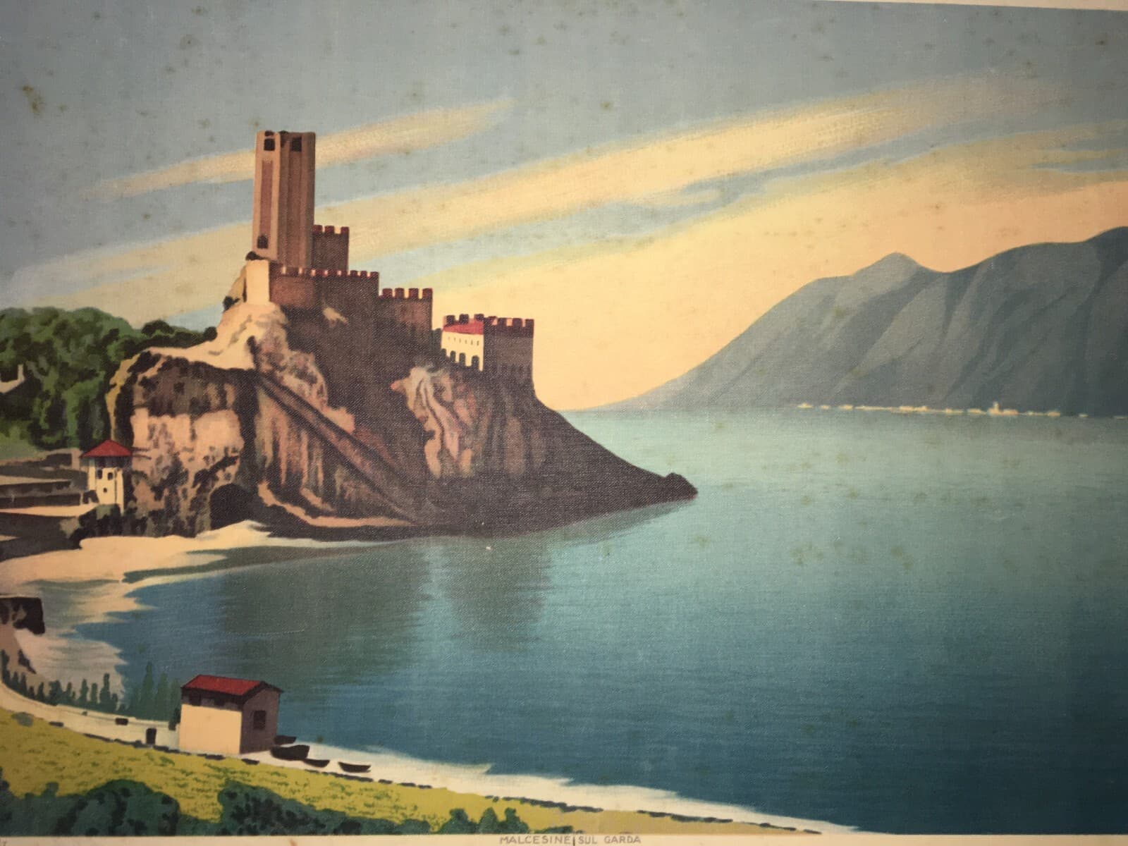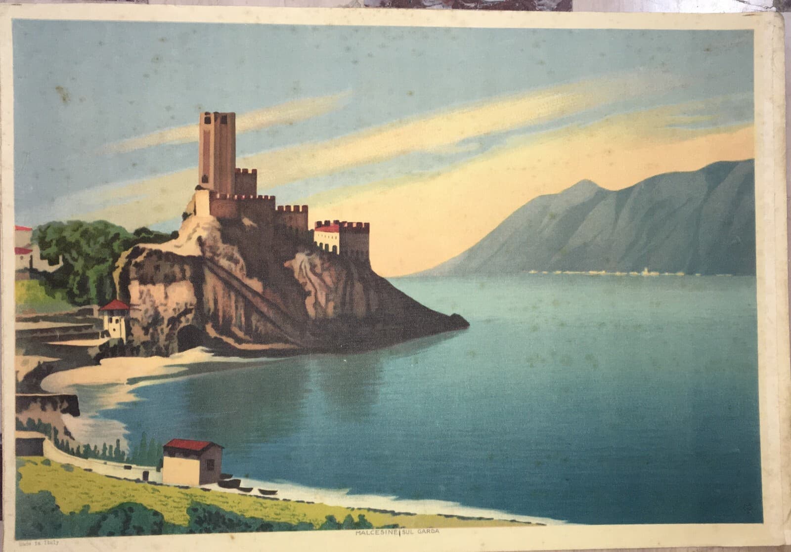 Lago Di Garda, Malcesine: Grande Veduta Panoramica. Stampa A Colori Su Tela