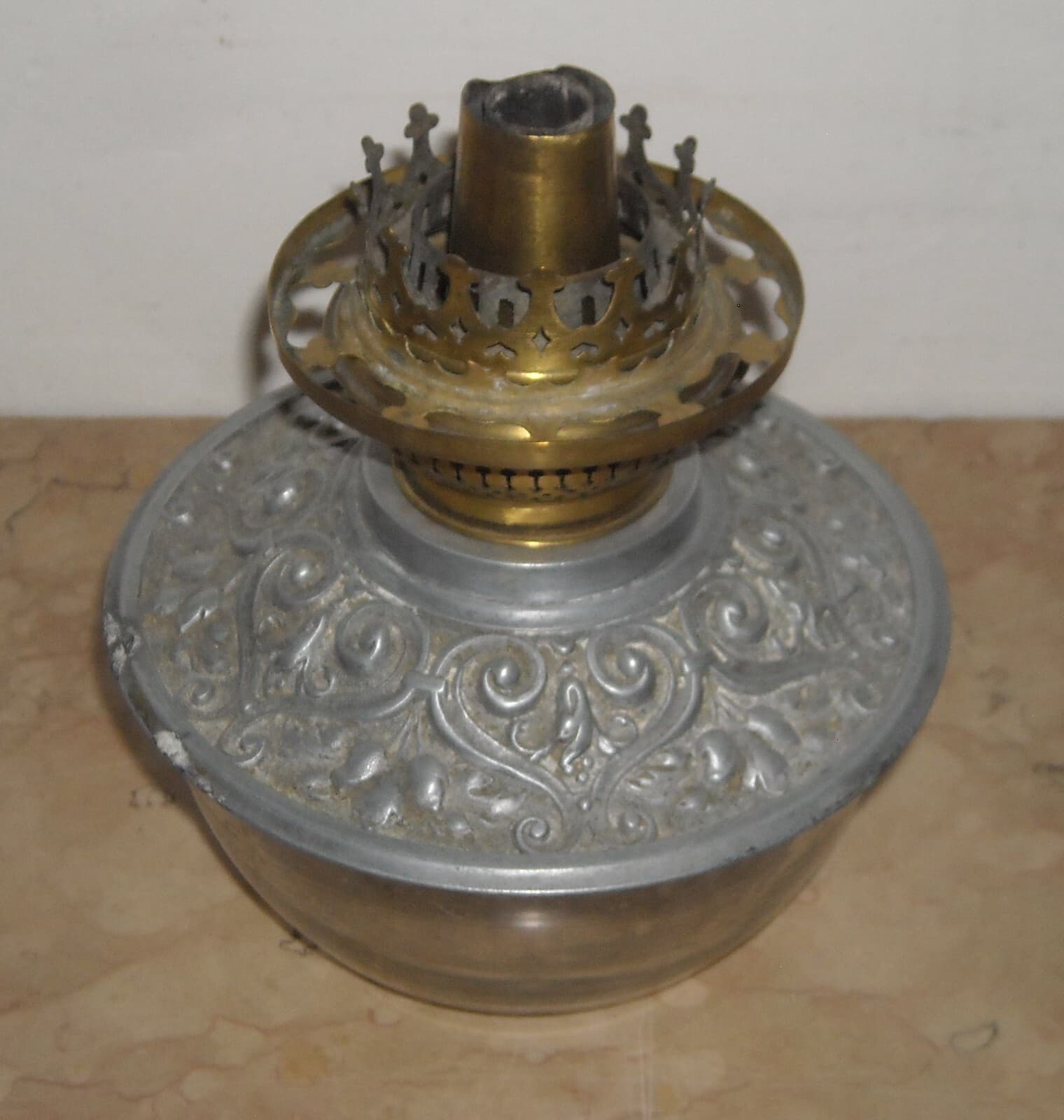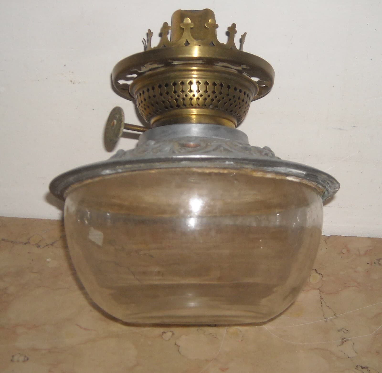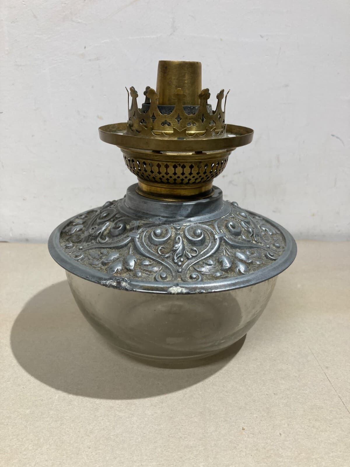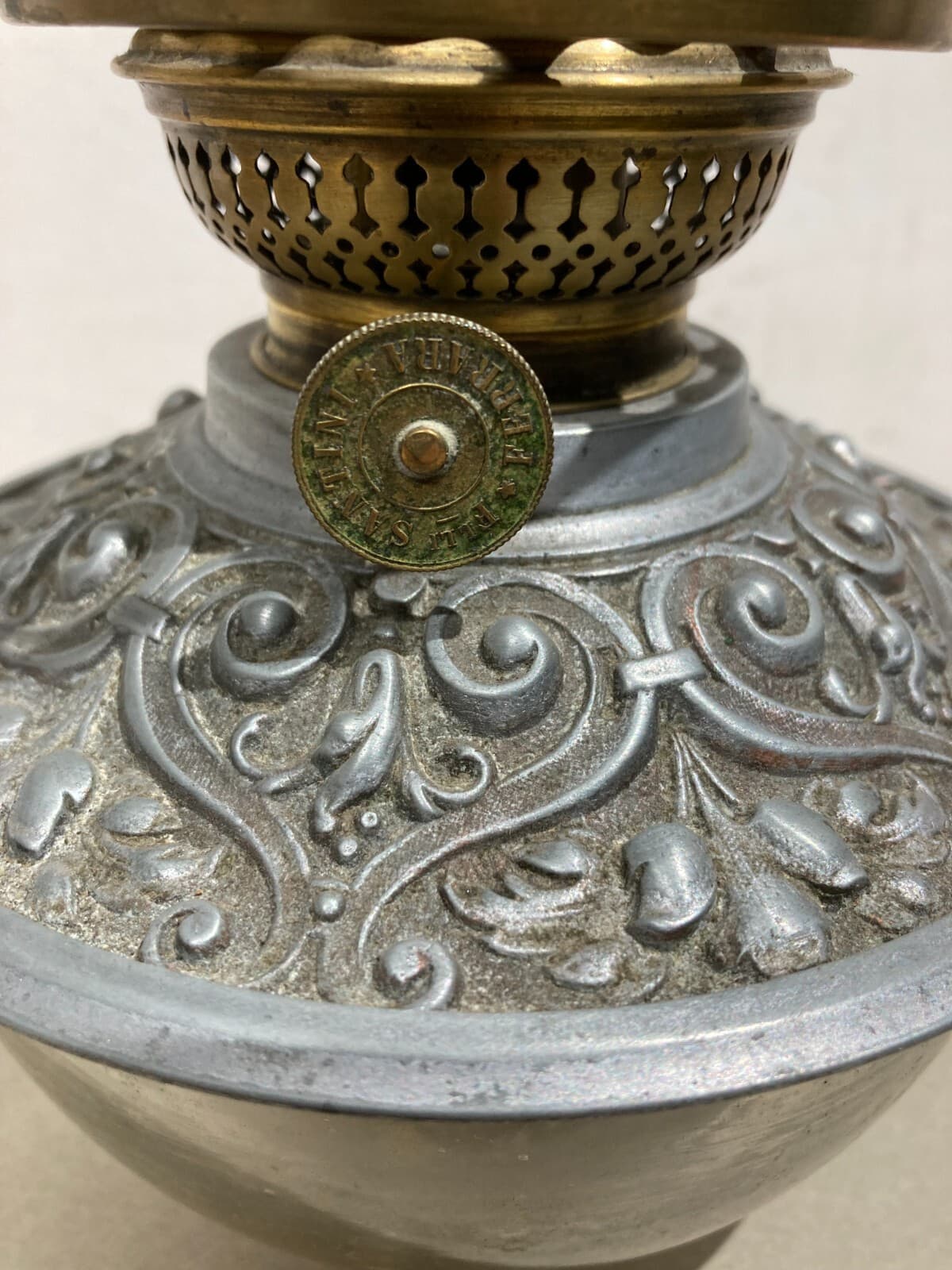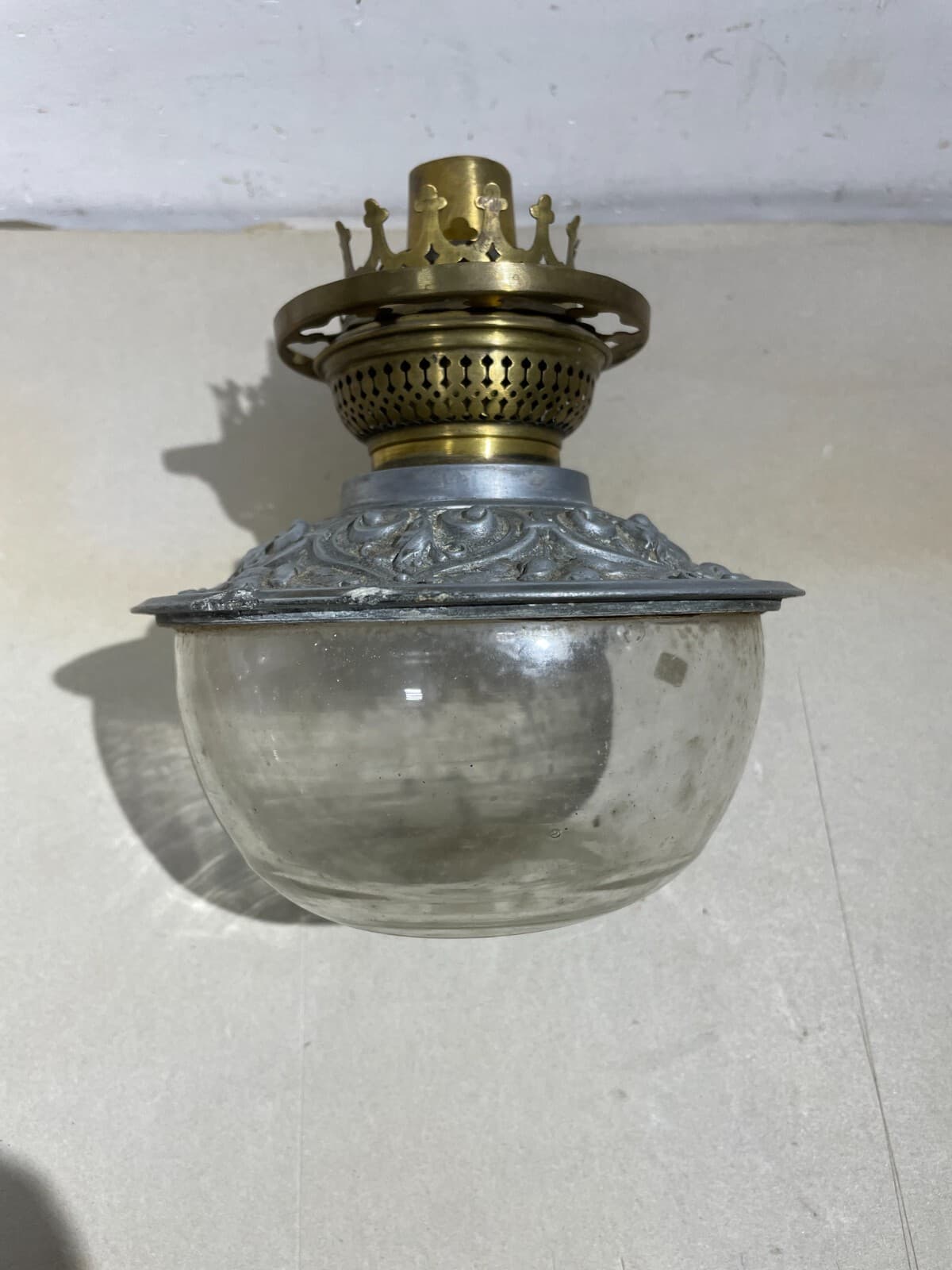 Antica Lampada In Vetro Con Artistica Copertura E Decori In Rilievo, Santini, Ferrara