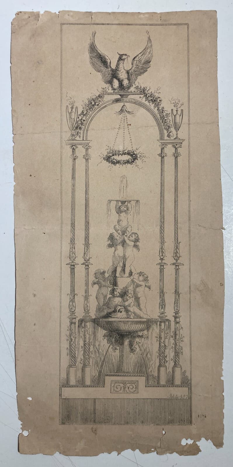 Antiche Arti Decorative: Fontana Architettonica Con Angioletti E Allegorie
