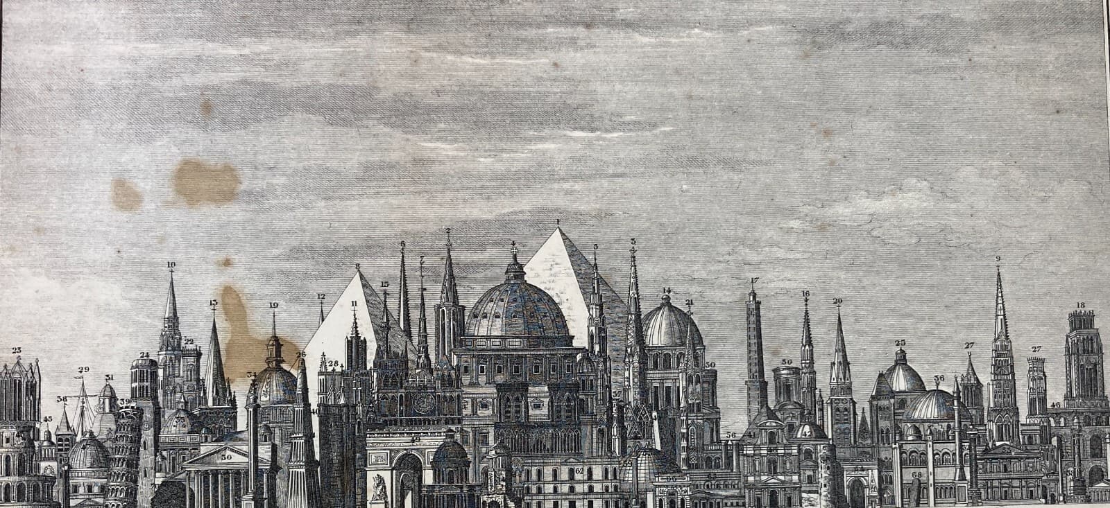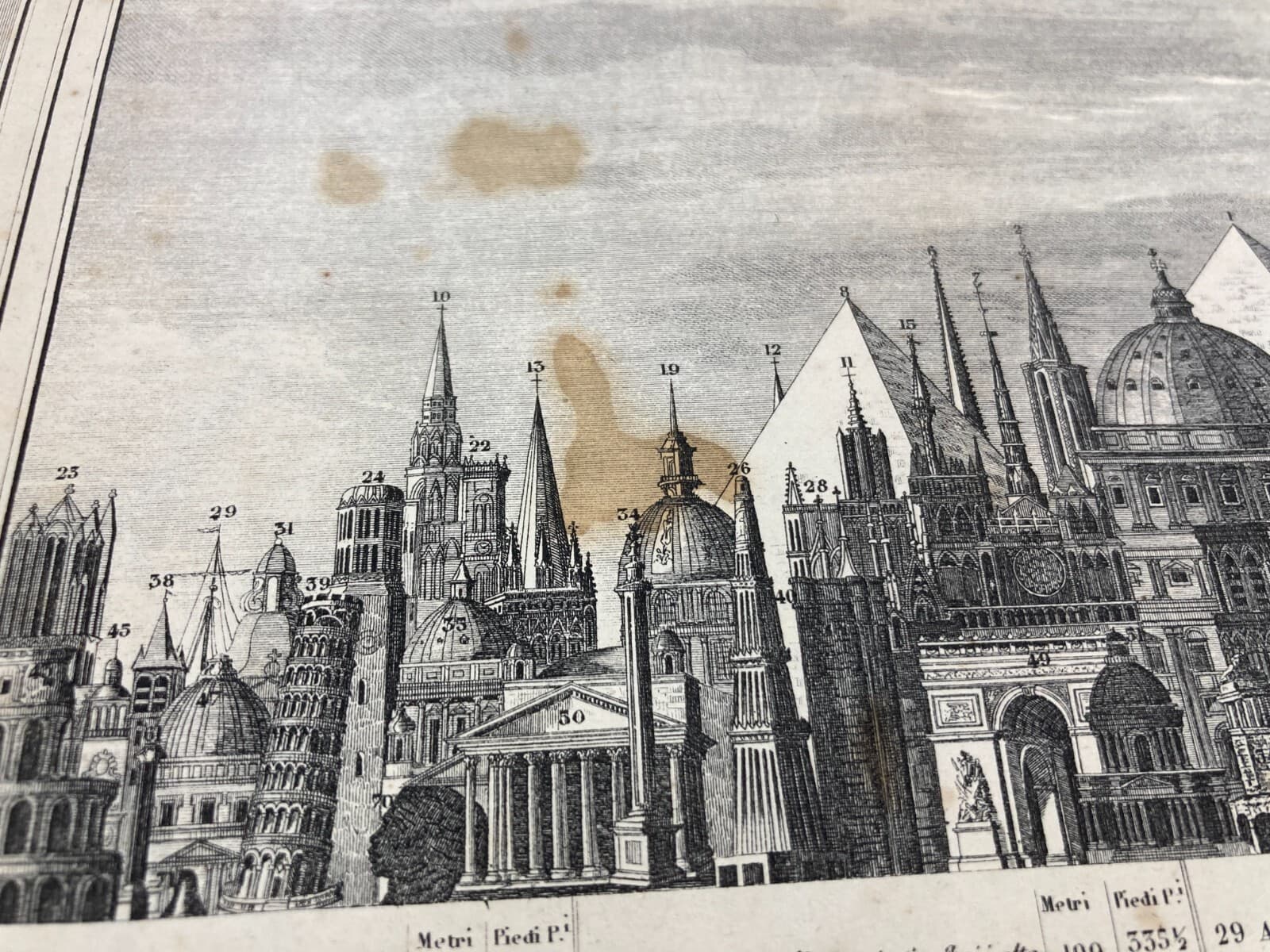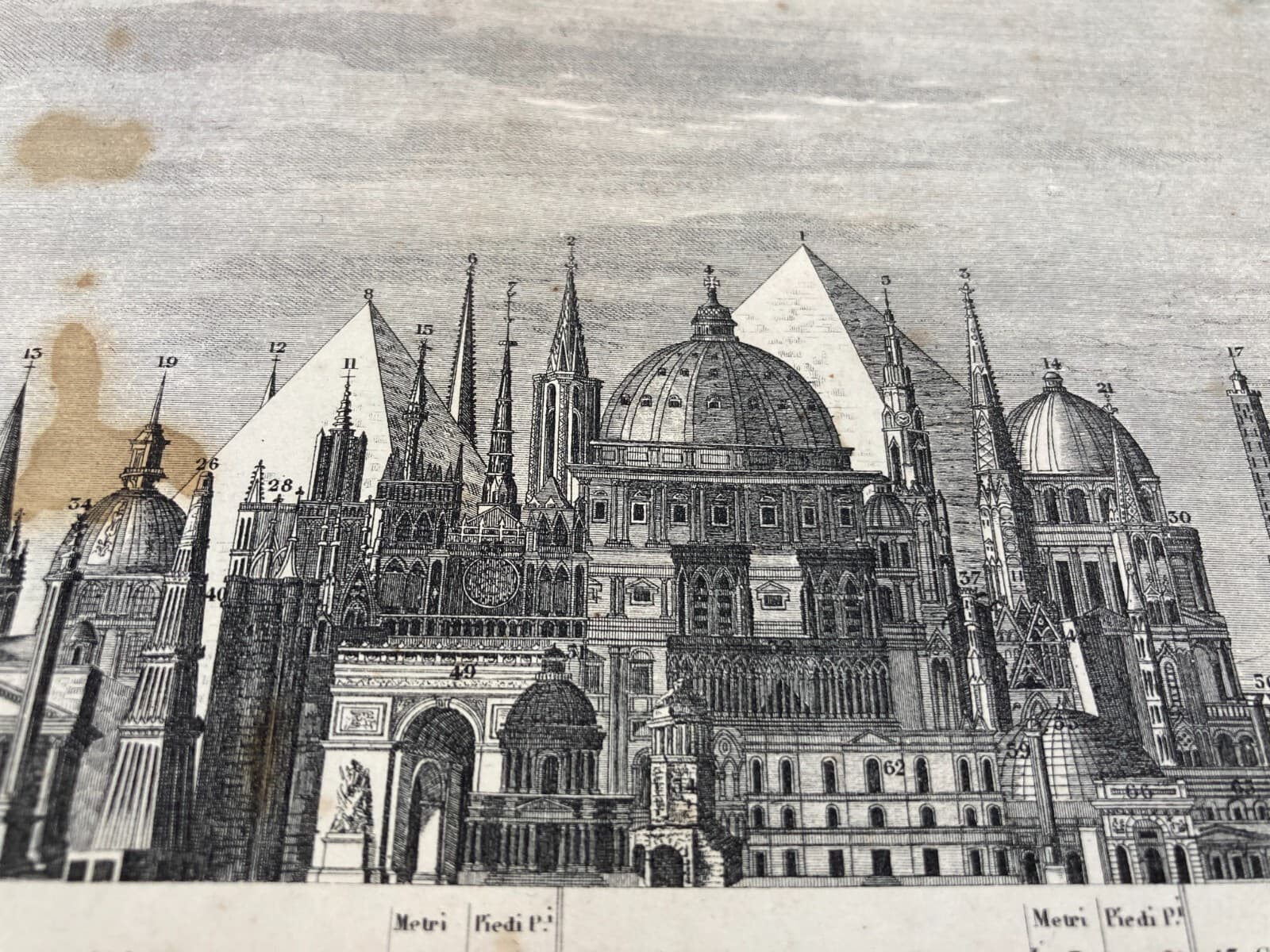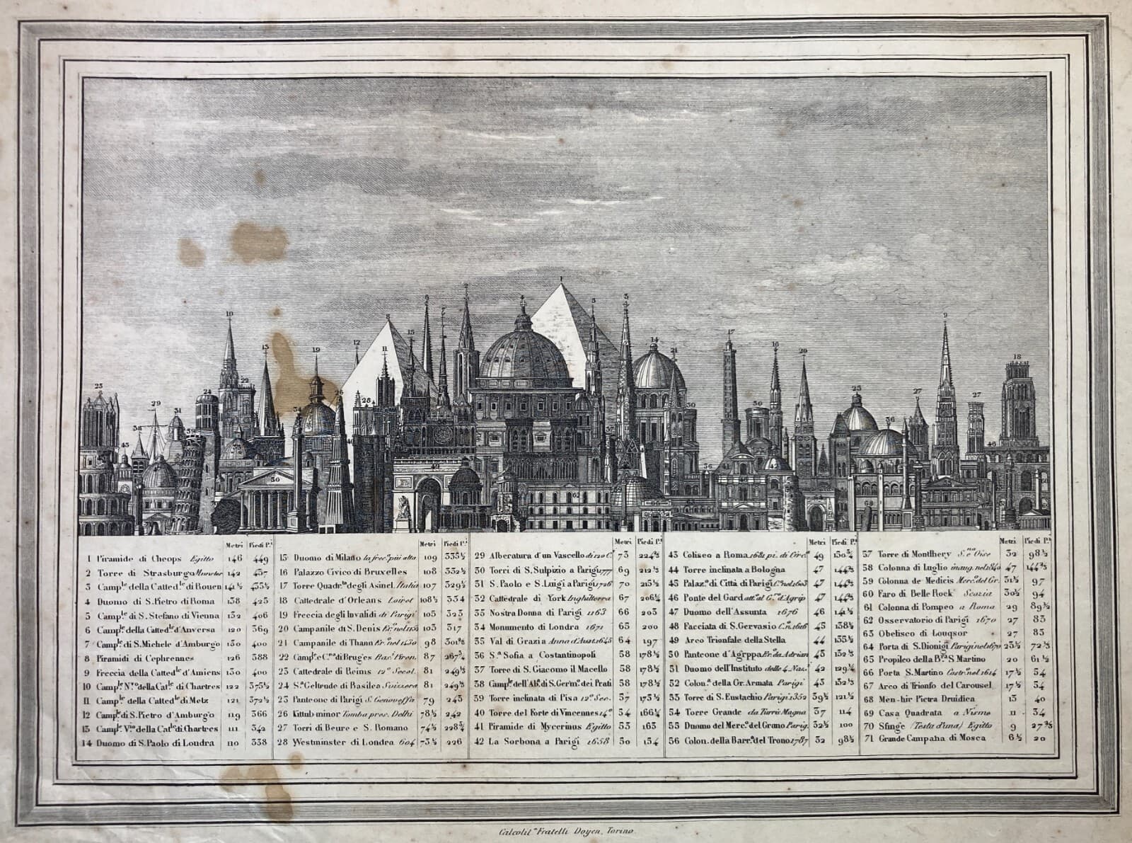 Altezze Dei Maggiori Monumenti: Piramidi, Torri, Campanili, Cattedrali. Stampa Dell'800