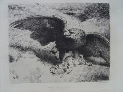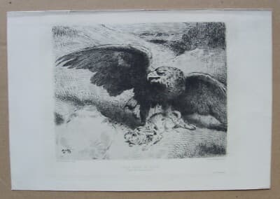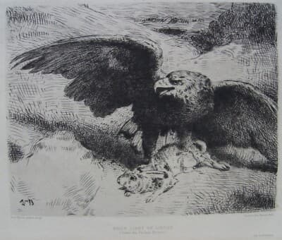 Arte: Artisti Dell'Ottocento. Antica Incisione Di Scena Di Caccia, Aquila E Lepre Di Léon Bonnat