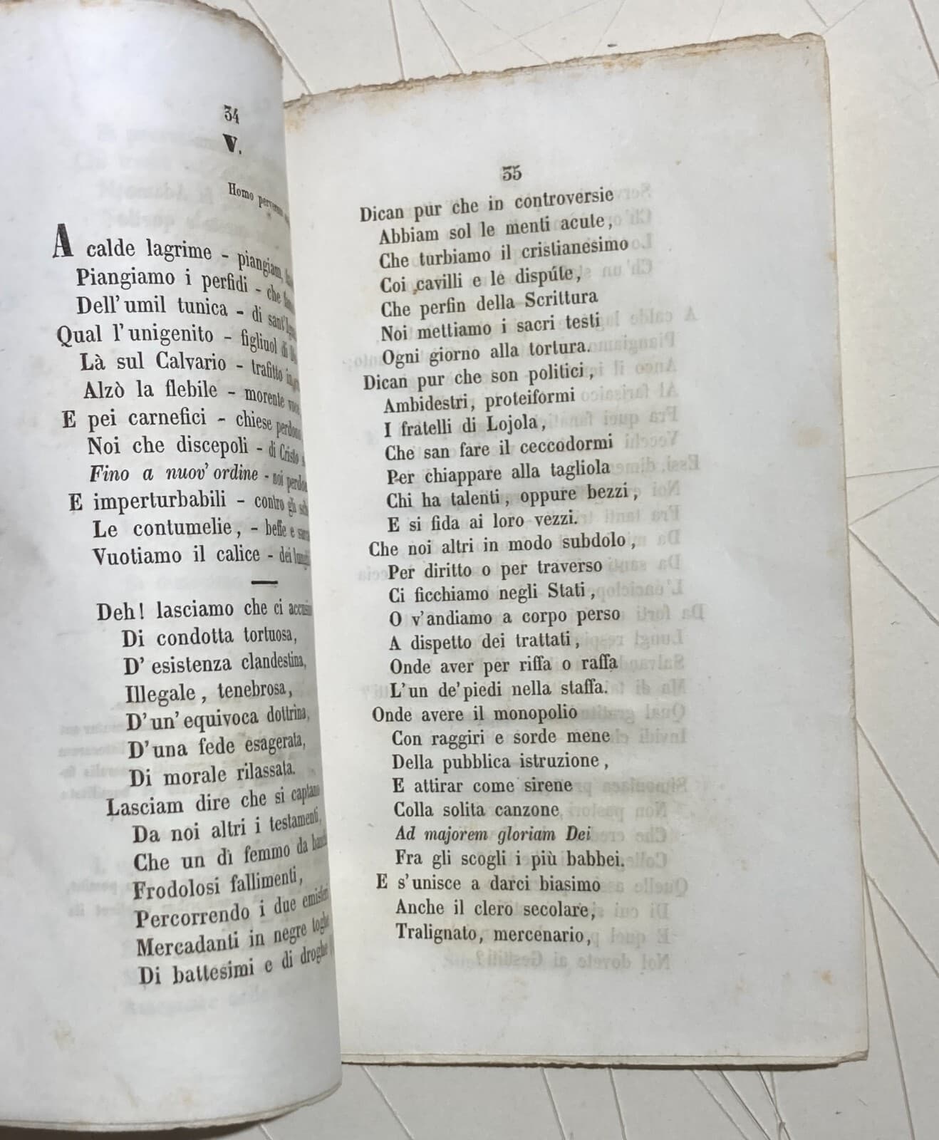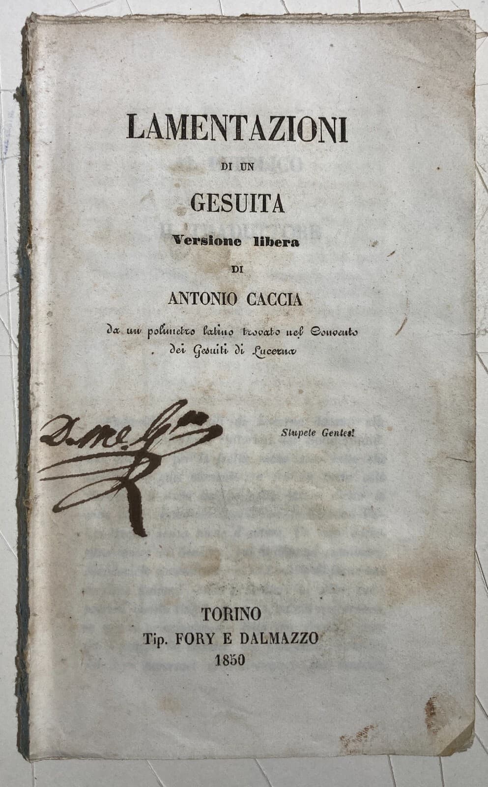 Compagnia Di Gesù. Lamentazioni Di Un Gesuita. Antonio Caccia. 1850