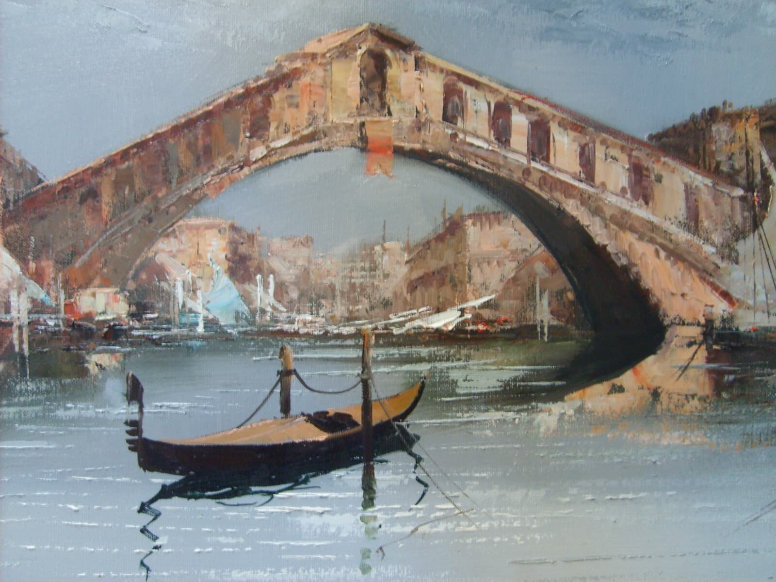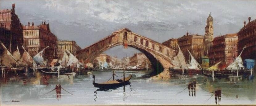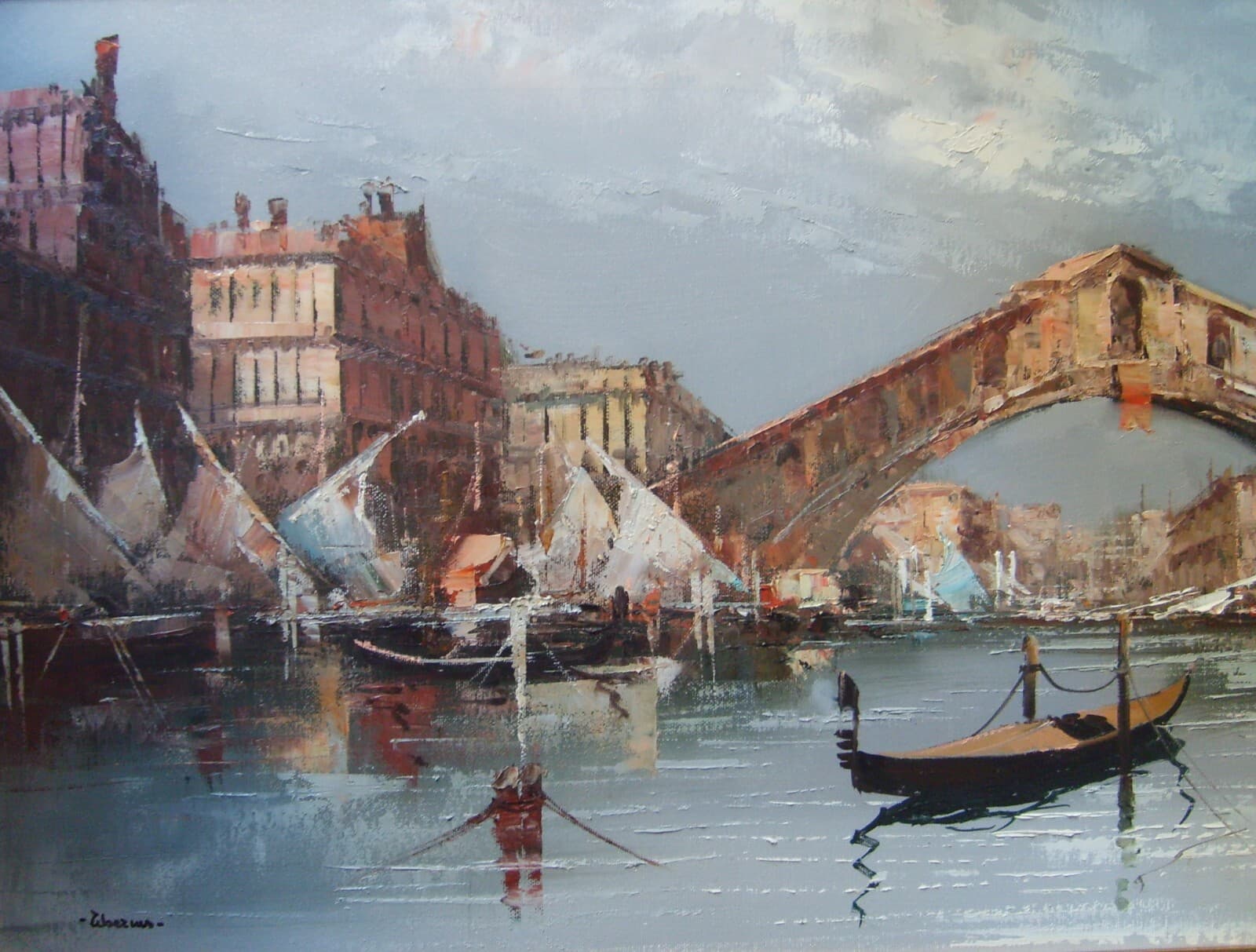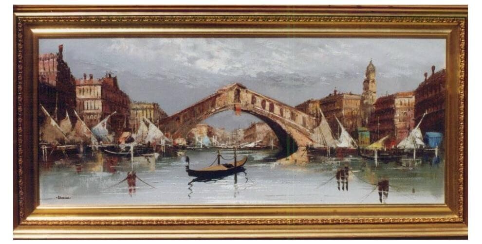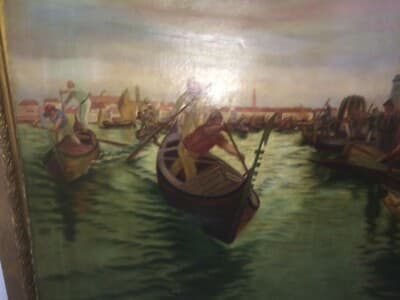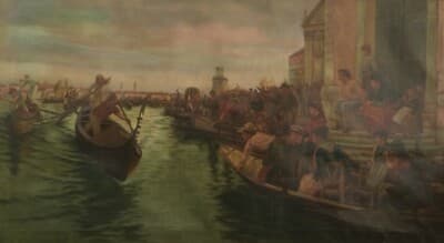 Arte Decorativa Del '900: Venezia, Veduta Del Canal Grande Dipinto Ad Olio