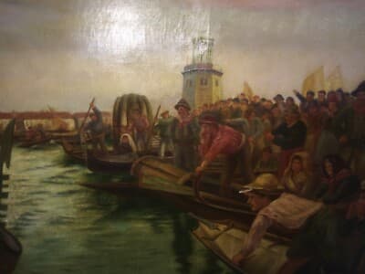 Veduta Portuale Animata Antico Dipinto A Olio Annie Williams