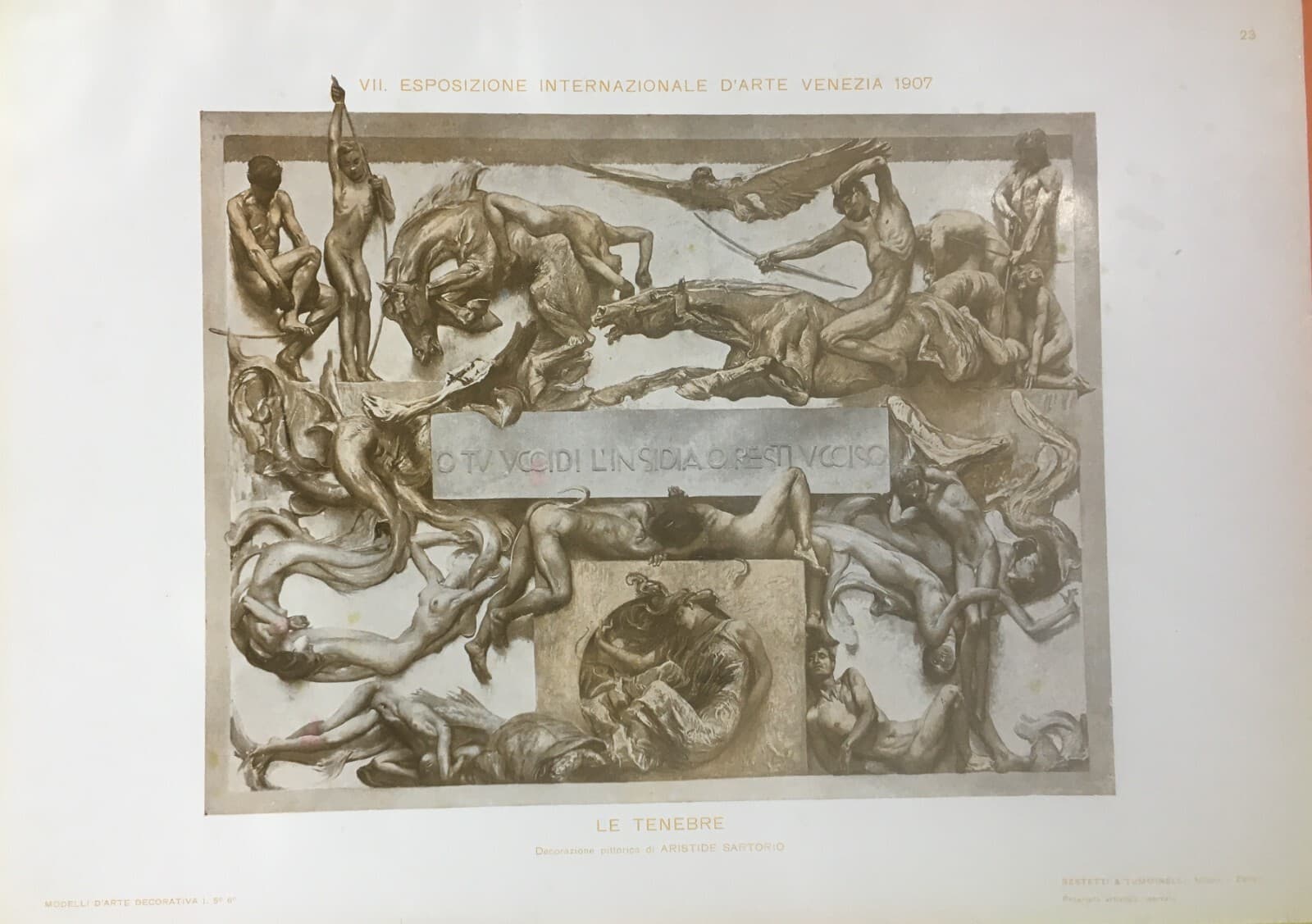 Aristide Sartorio, Le Tenebre. Antica Stampa Simbolista Per L'Esposizione Di Venezia