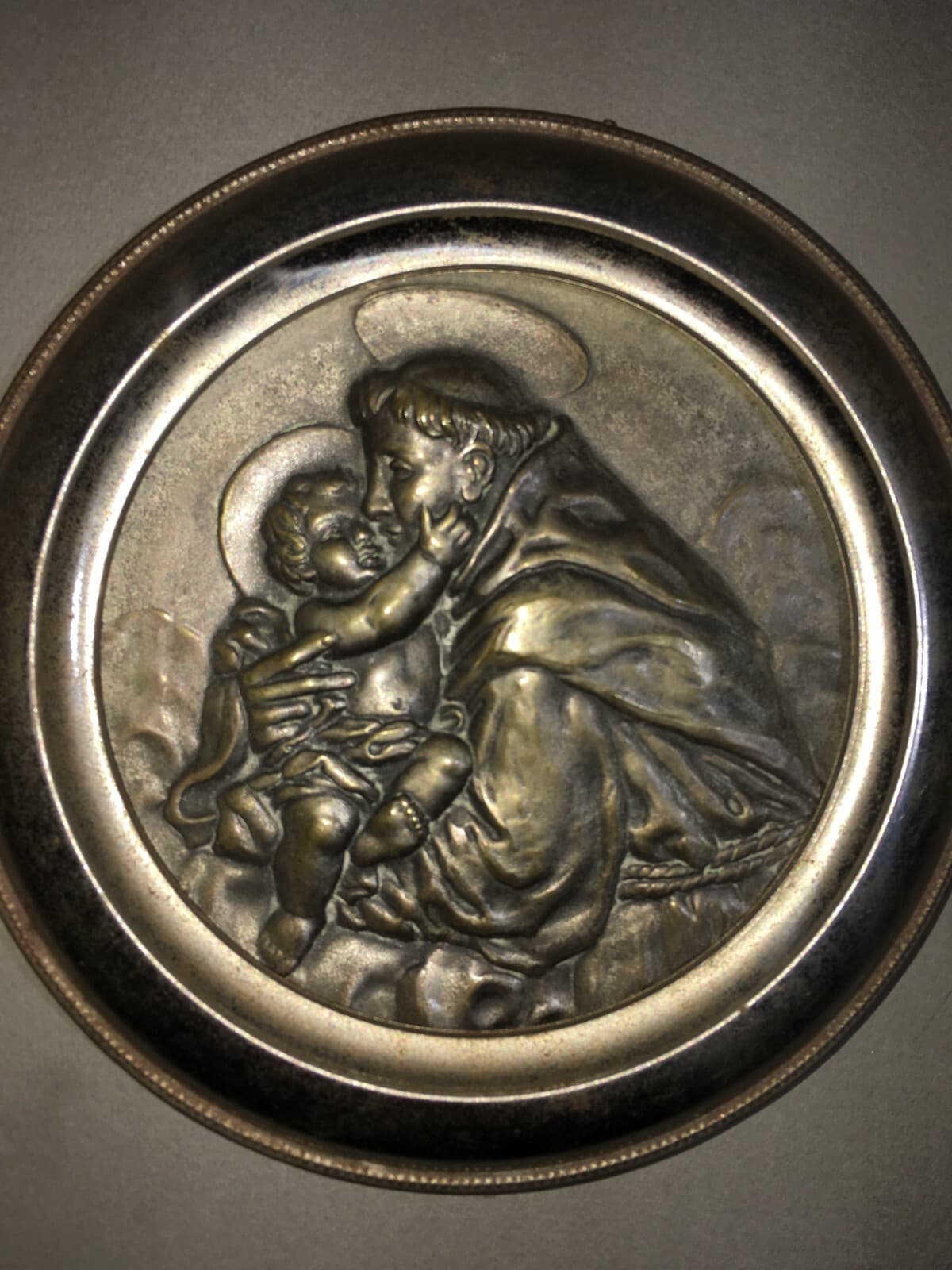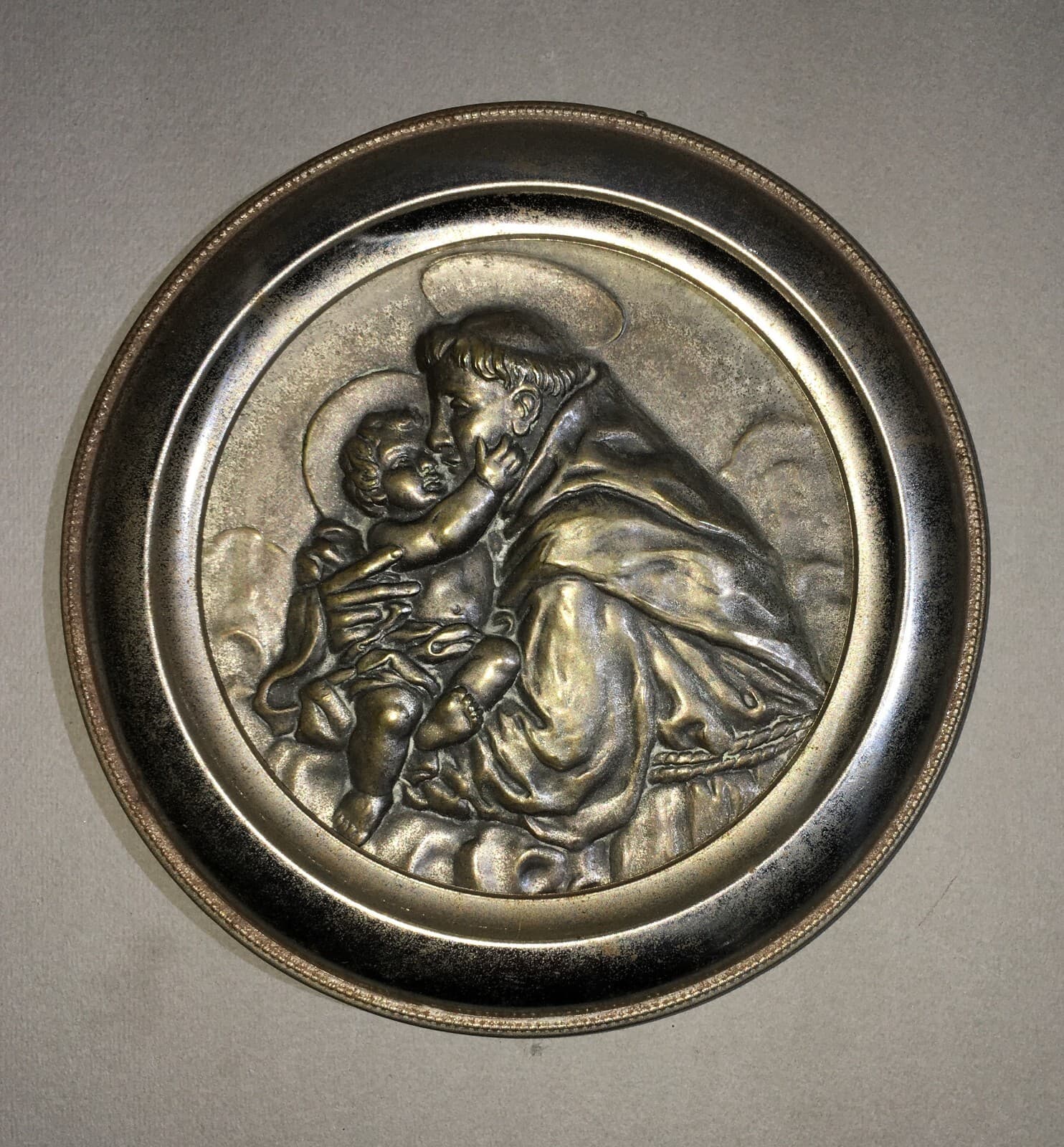 Arte Devozionale, Placchetta In Metallo Sbalzato Raffigurante Sant'Antonio Di Padova