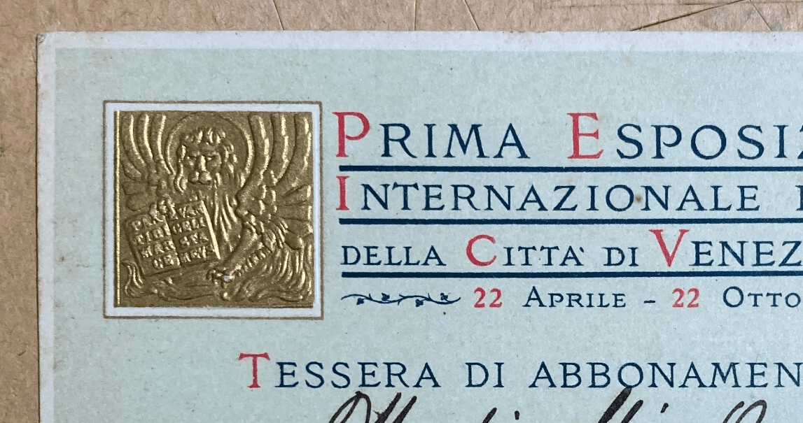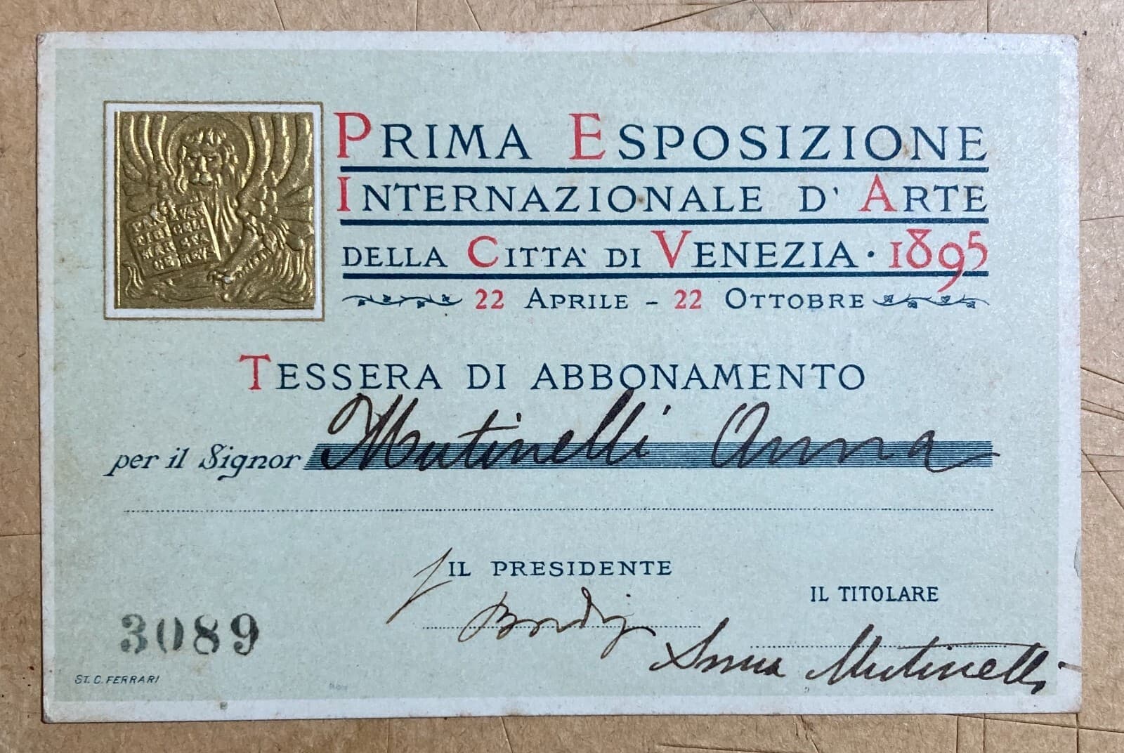 1895 Prima Esposizione Internazionale d'Arte Di Venezia: Tessera Di Abbonamento Anna Mutinelli