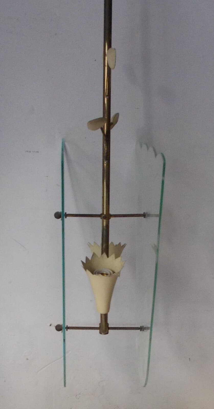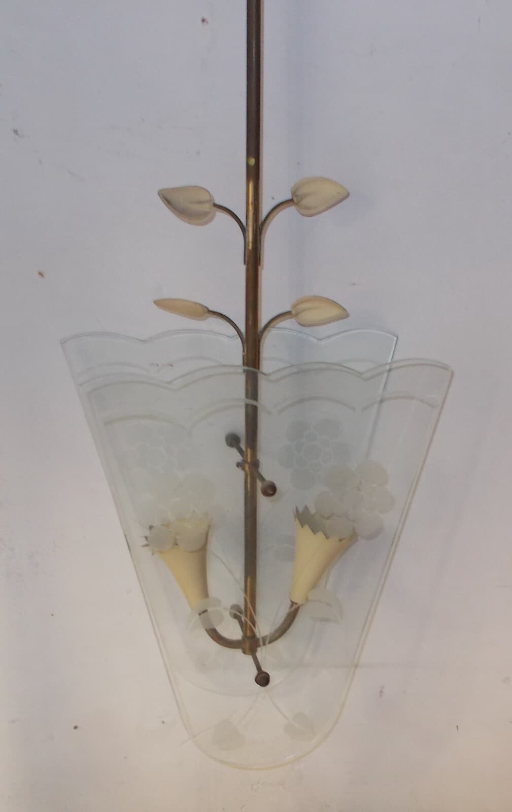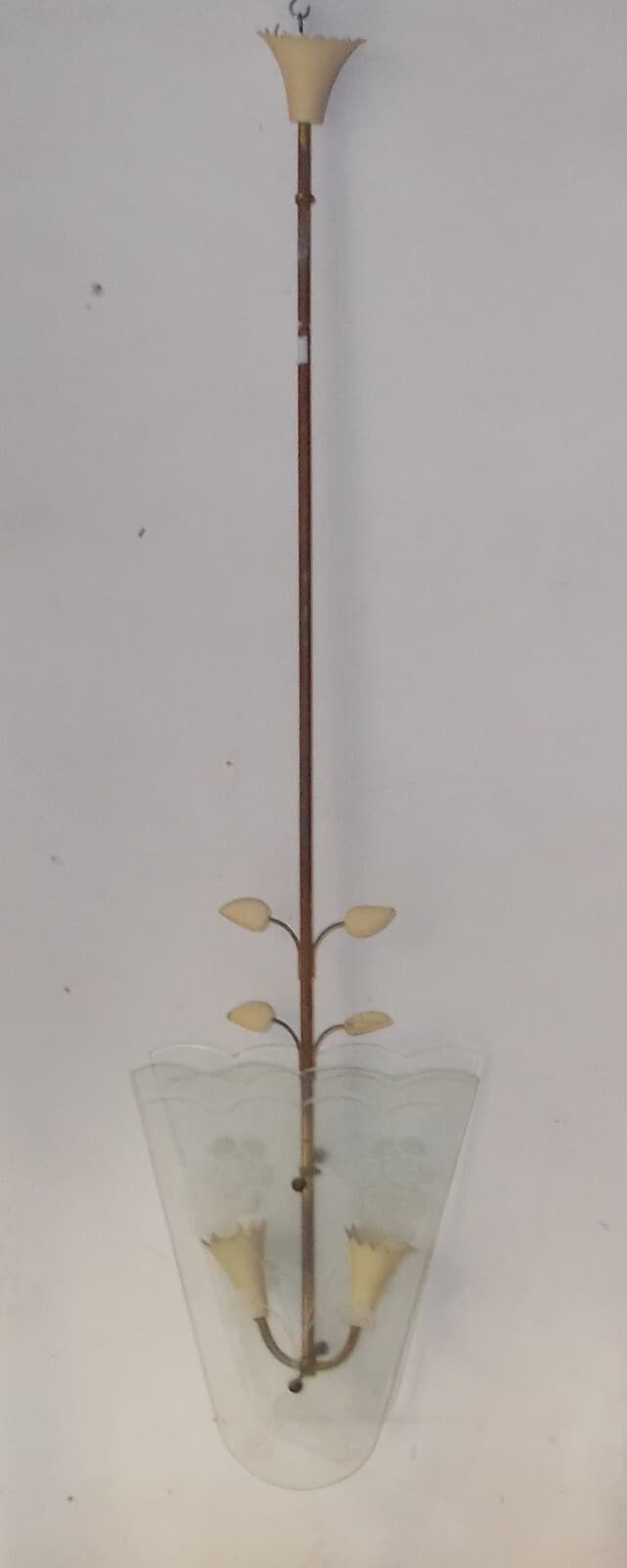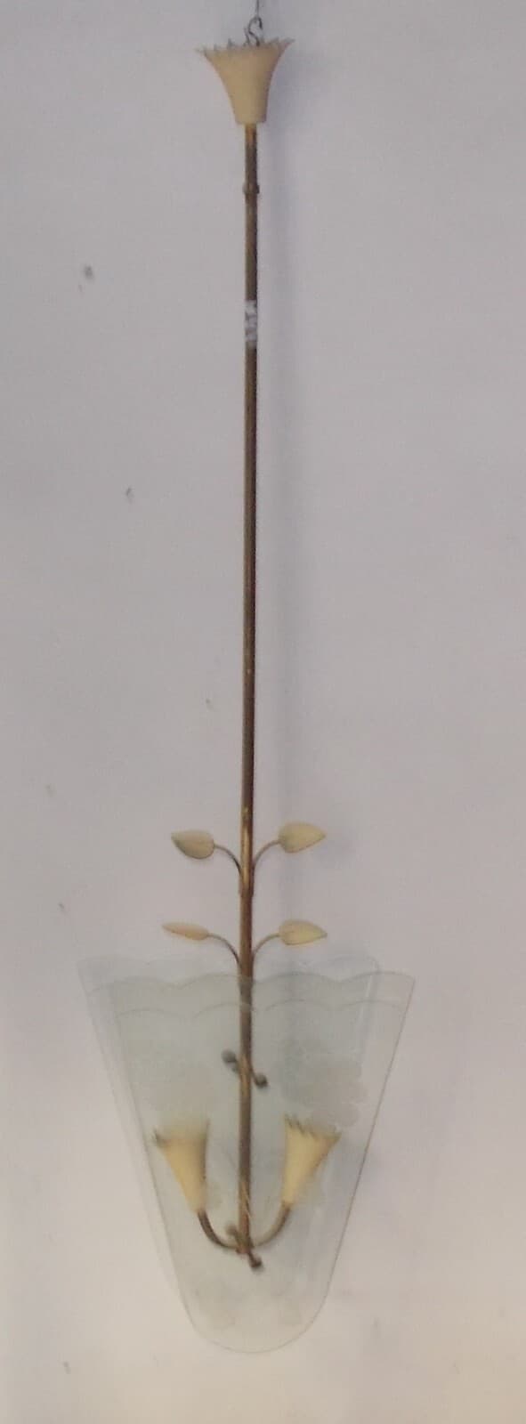 Lampadario A Sospensione In Vetro Inciso E Ottone