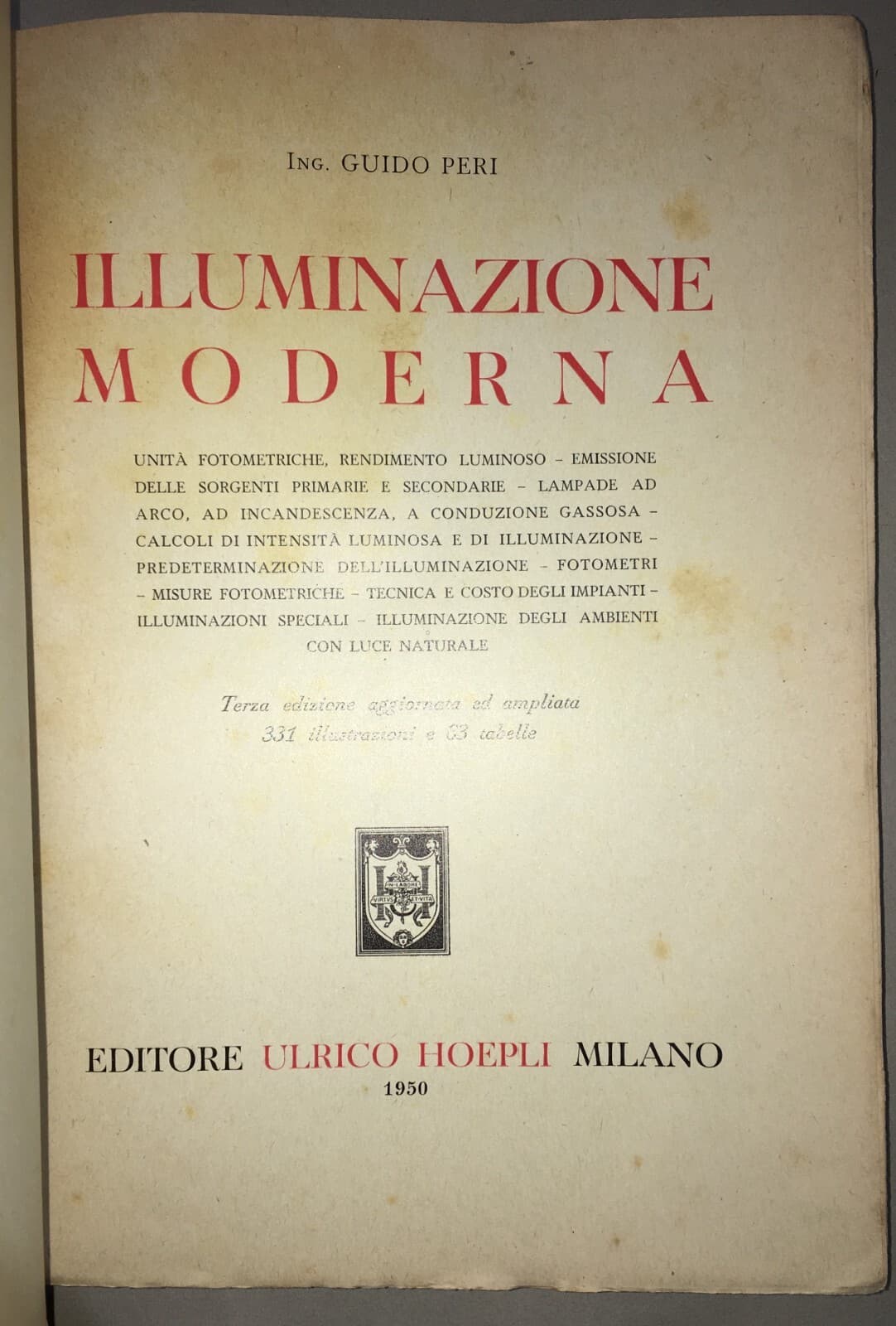 Illuminazione Moderna: Lampade Ad Arco E Fotometri. Guido Peri, Edizione Hoepli