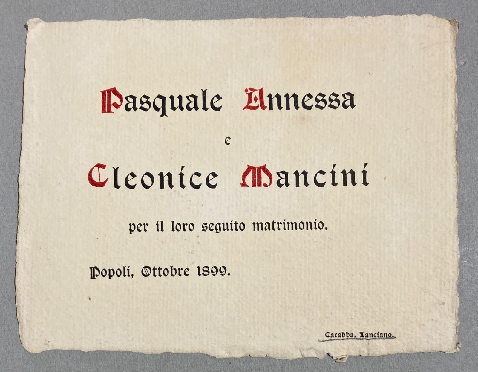 Abruzzo, Popoli, Lanciano: Antico Invito Per Nozze, Sposalizio Annessa E Mancini