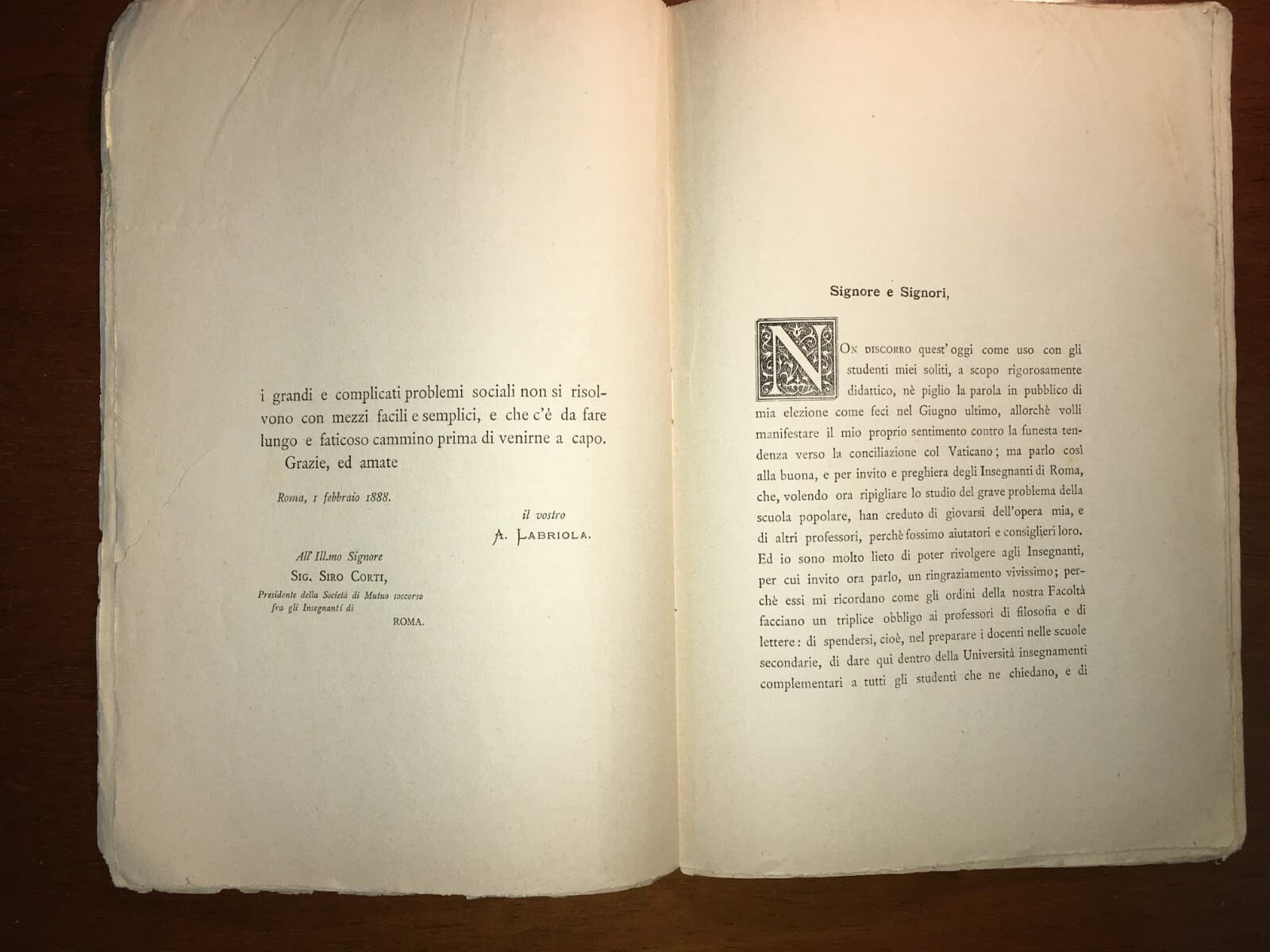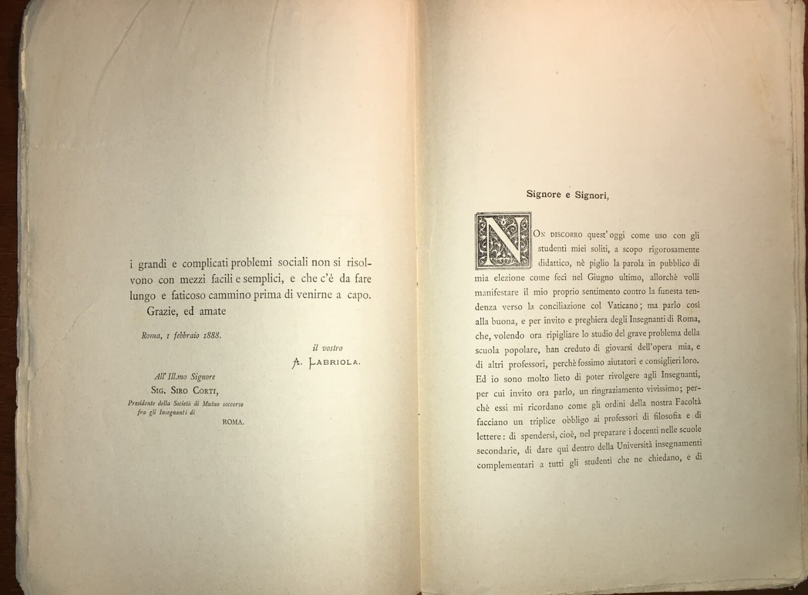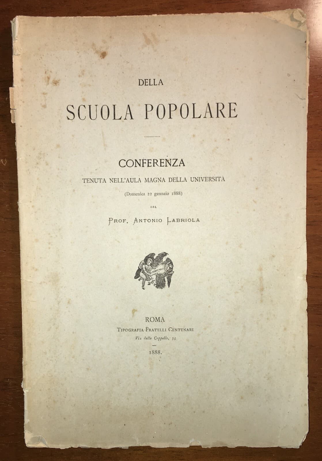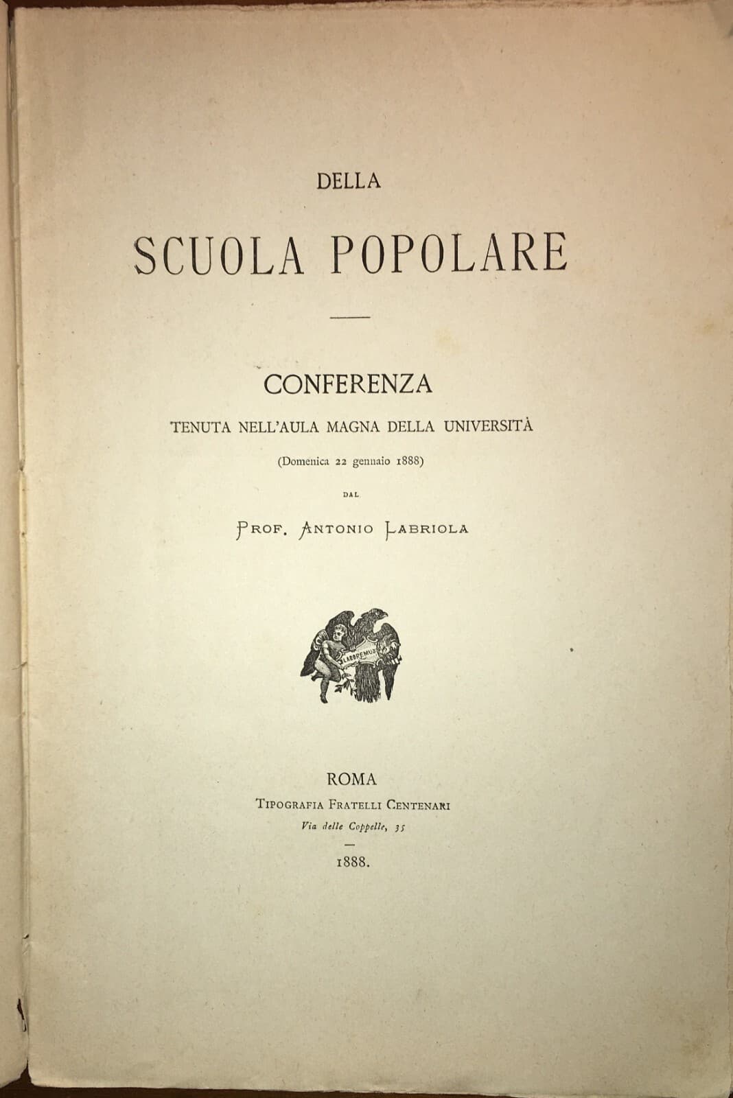 Pedagogia Scuola Popolare Labriola Società Degli Insegnanti Conferenza 1888