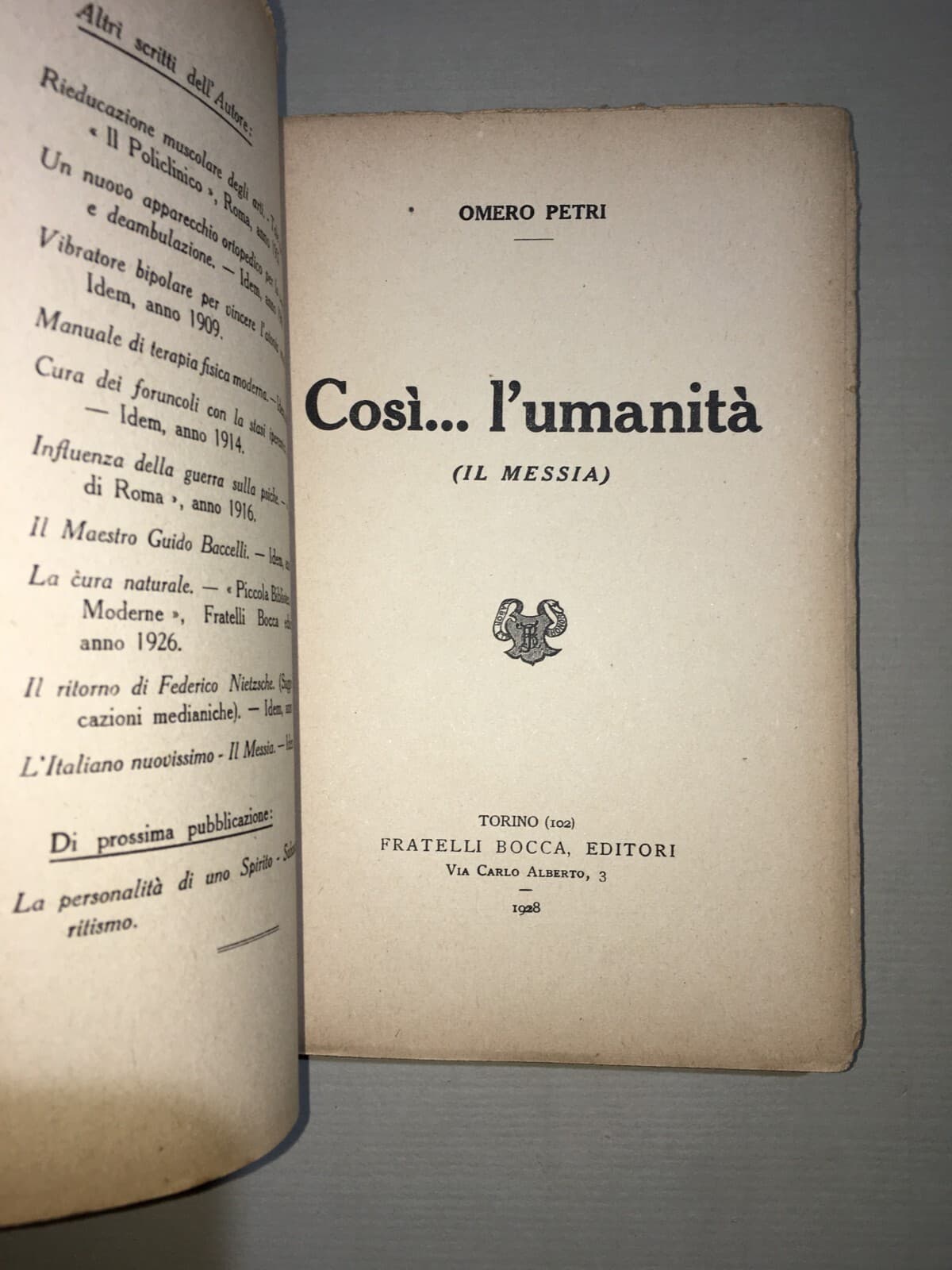 Omero Petricosi, "L'Umanità (Il Messia)". Torino, Bocca, 1928