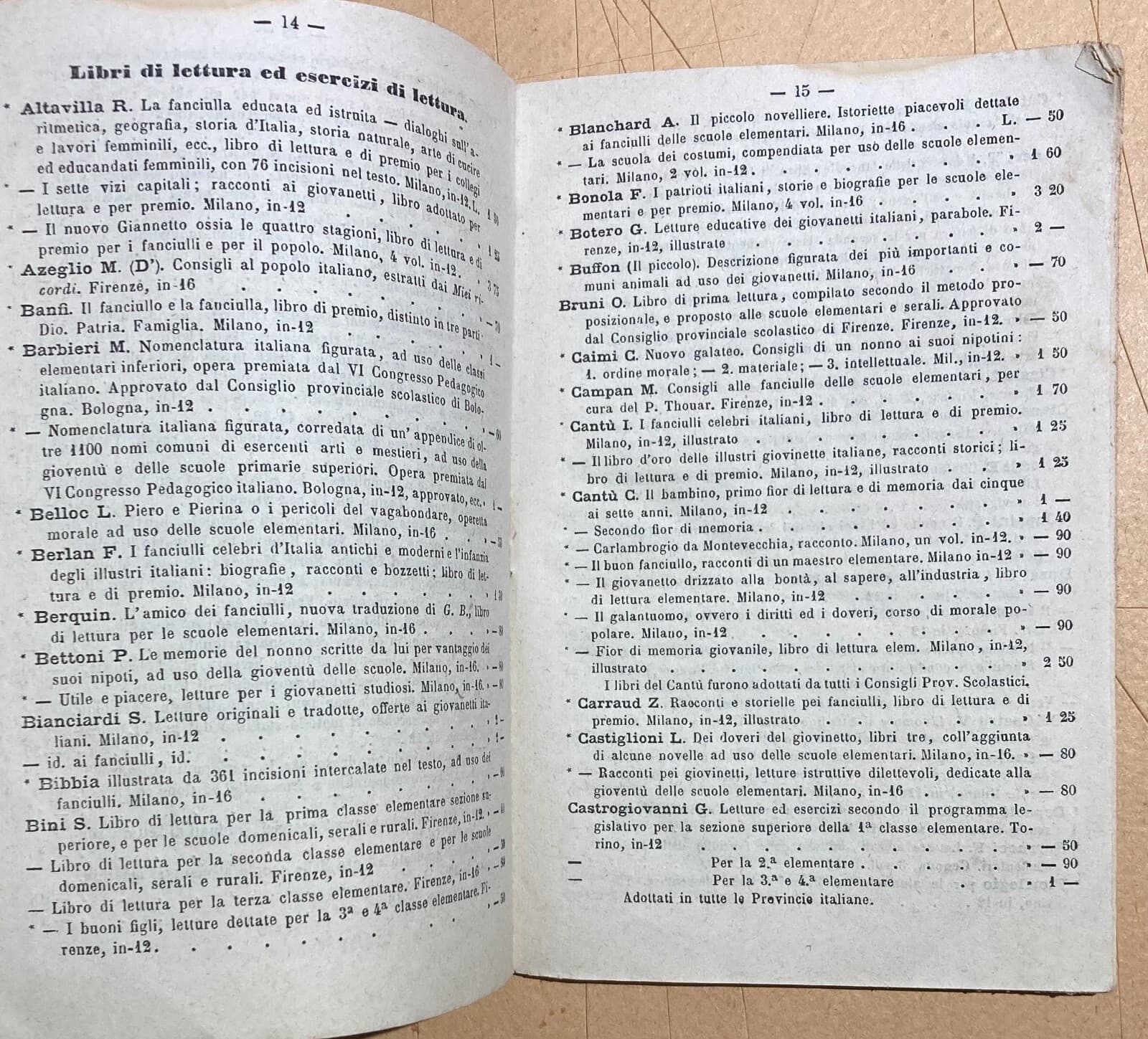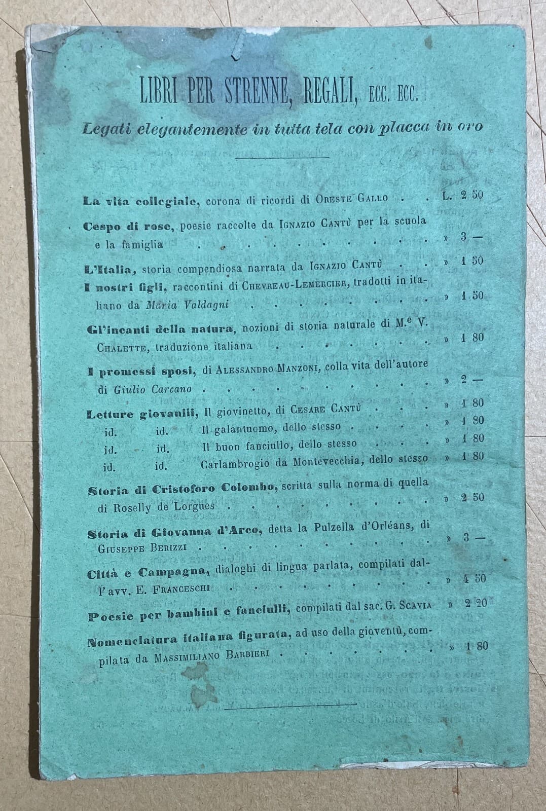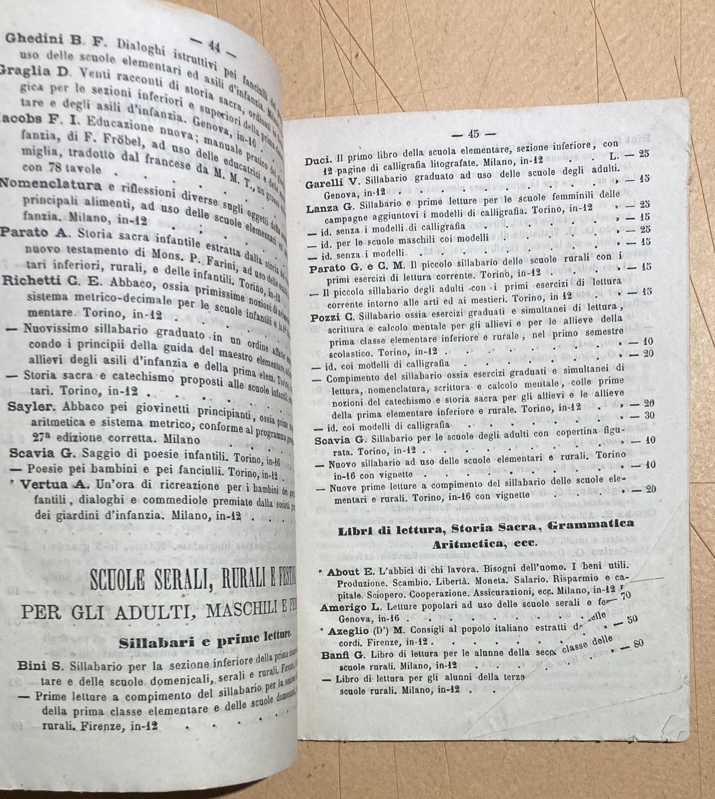 Catalogo Editoriale Libreria Scolastica Enrico Trevisini, Milano, 1875 76