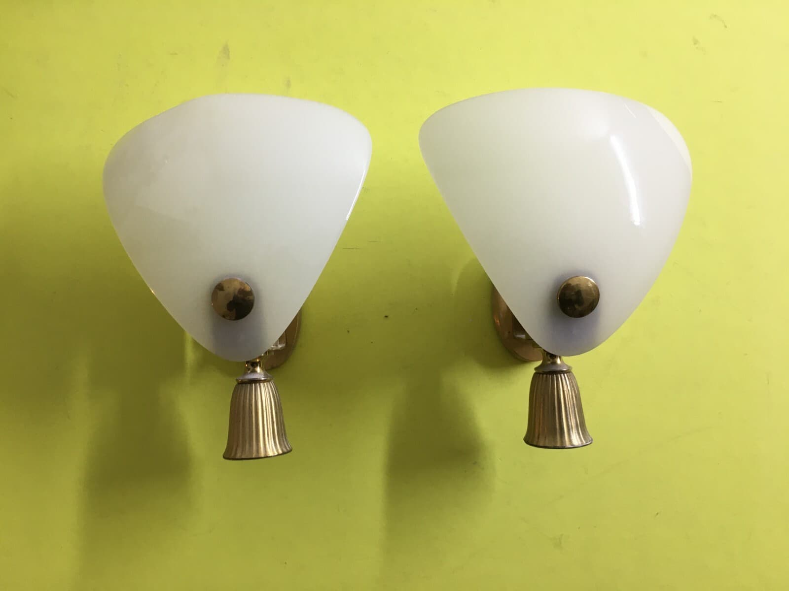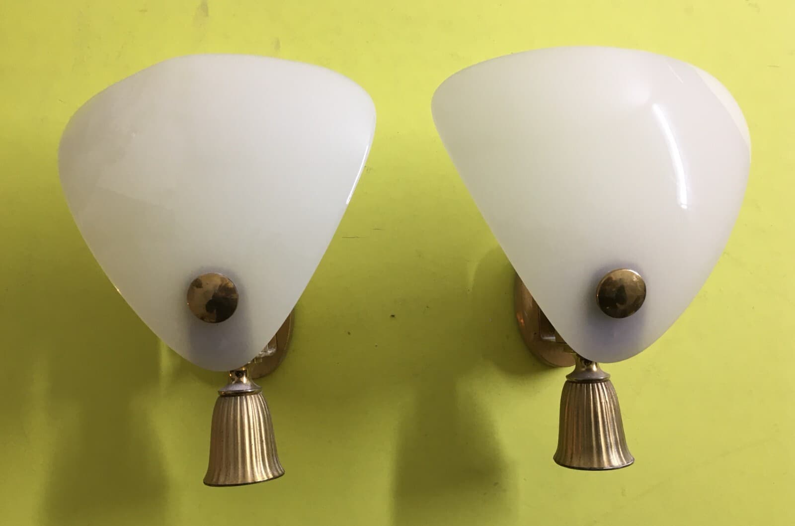 Arti Decorative Del '900 Coppia Di Appliques Ventole In Vetro Opalescente Anni '60