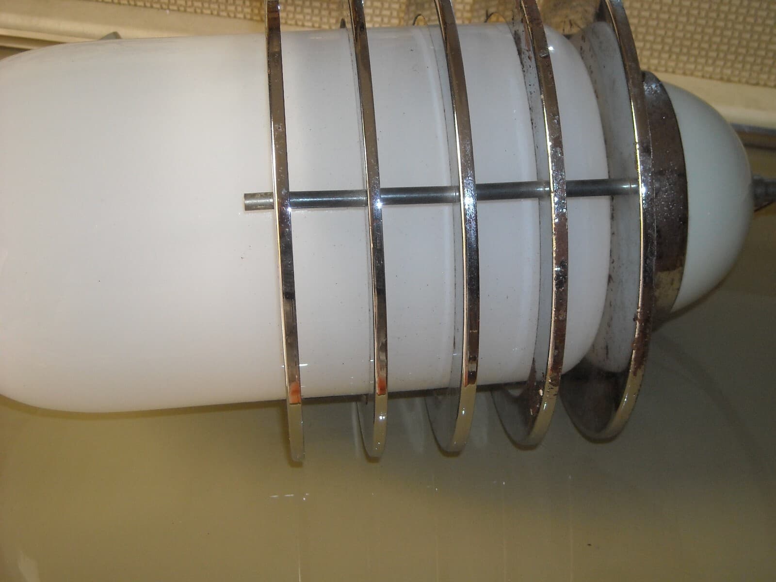 Lampada Da Soffitto In Vetro Opalescente E Metallo Cromato, Stile Fontana Arte, 1950 1970 Circa