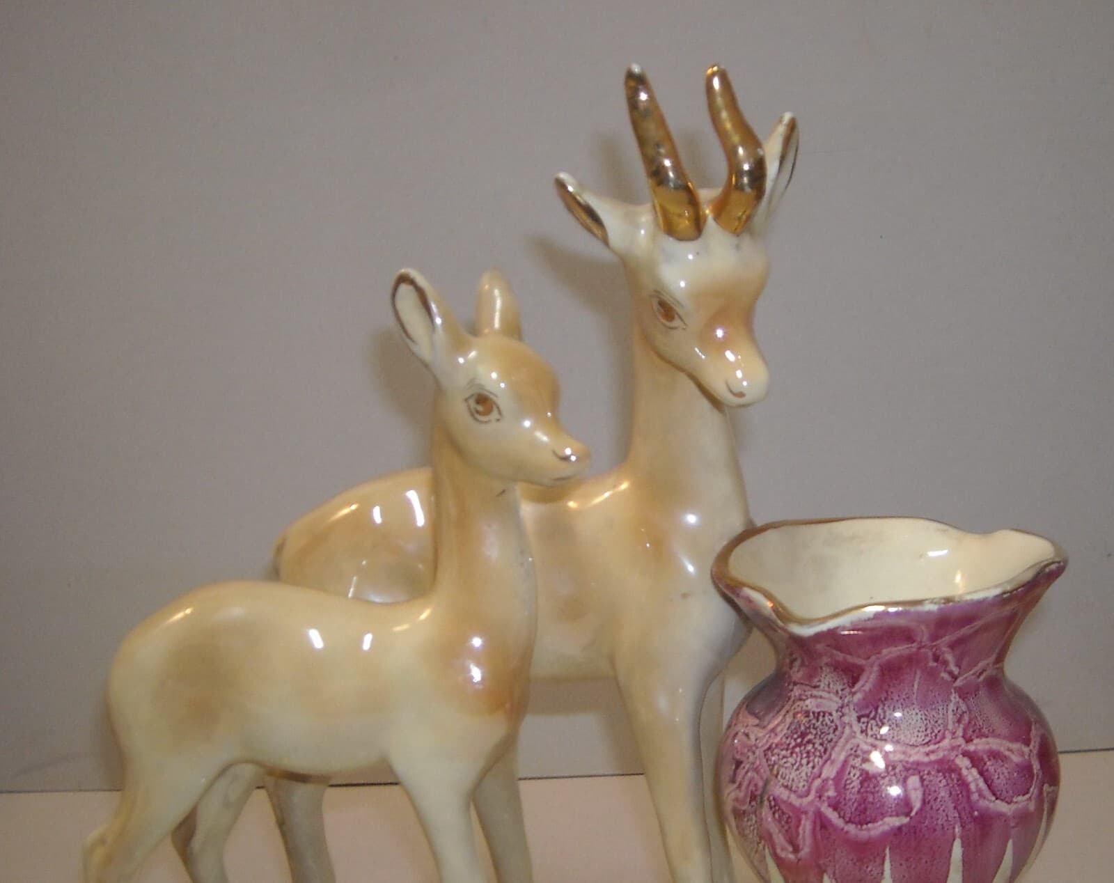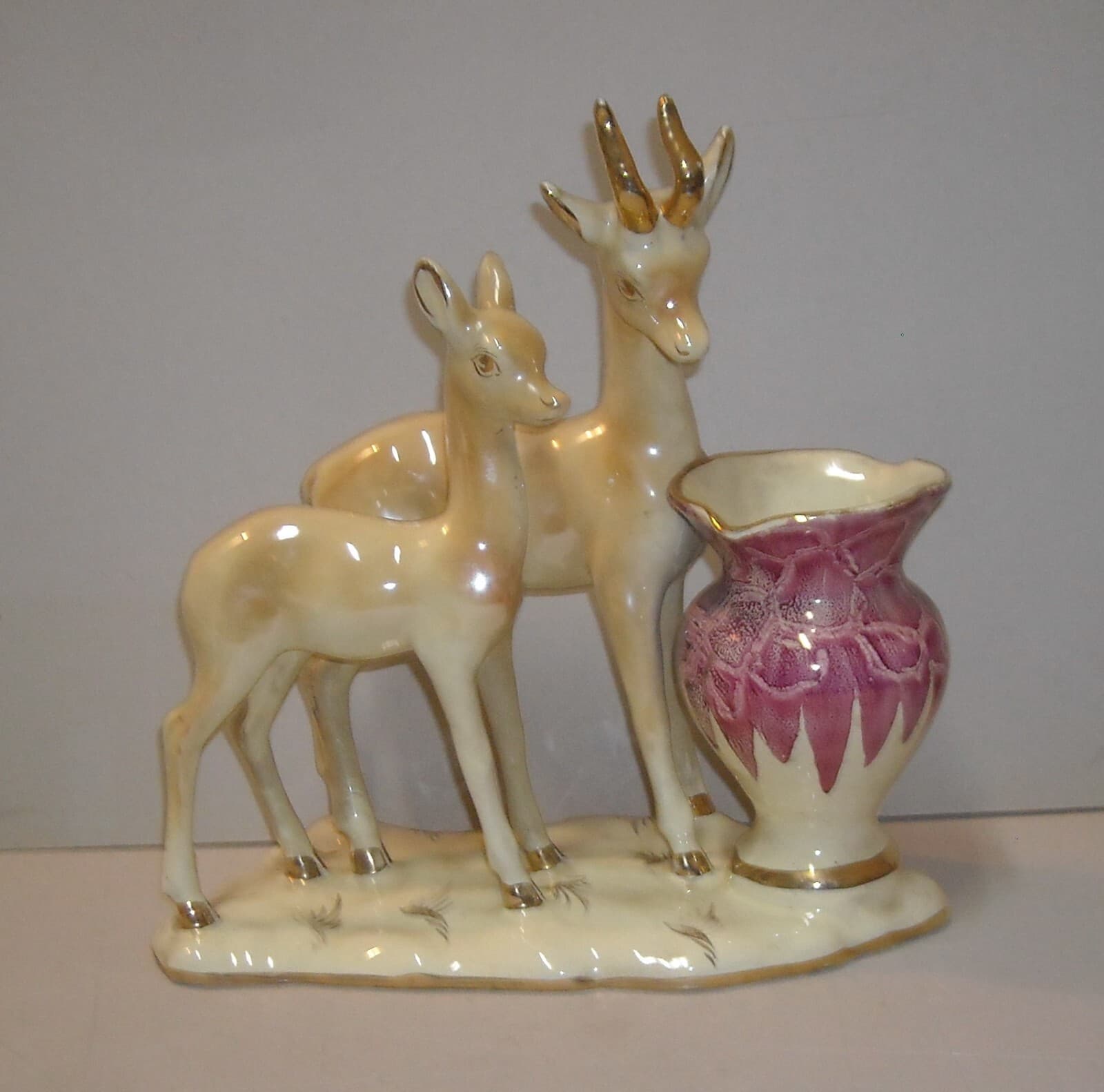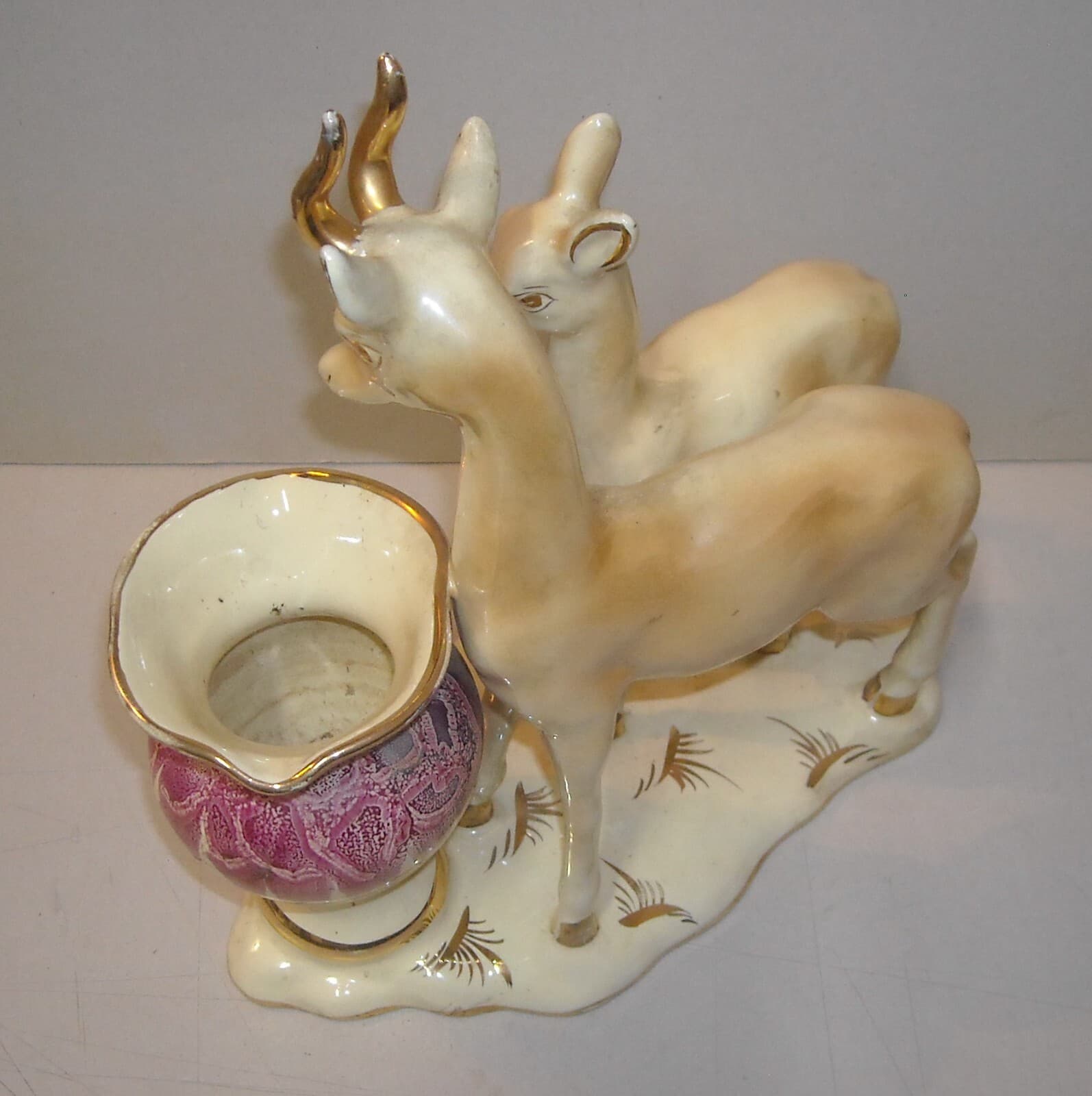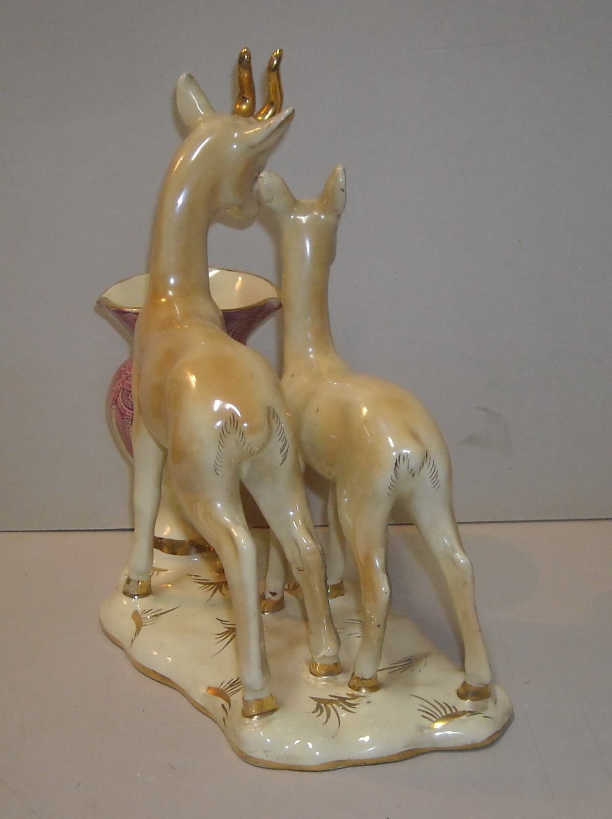 Cerbiatti Con Vaso Portafiori. Scultura In Ceramica Policroma
