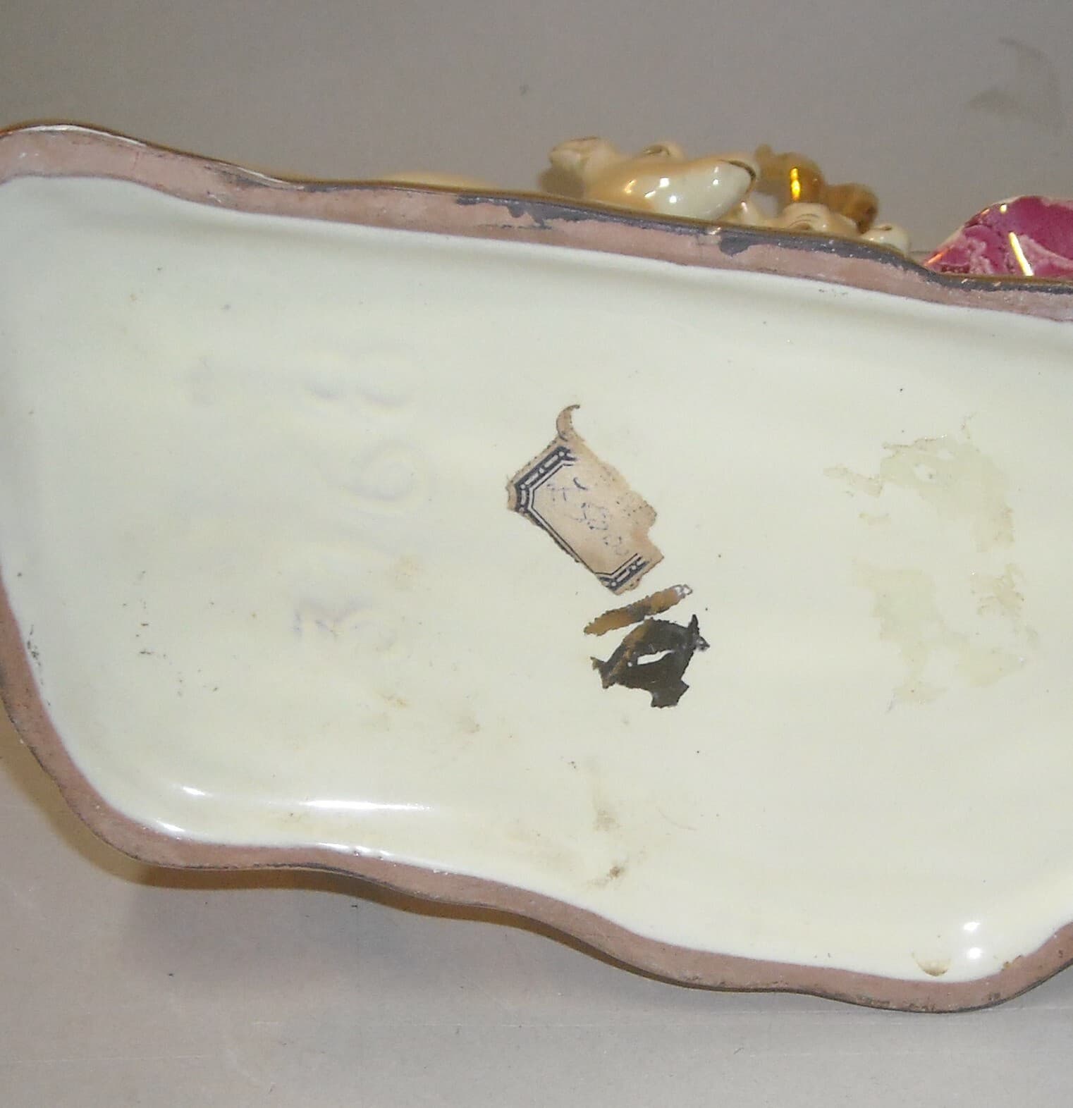 Posacenere d'Epoca In Ceramica Con Decori Floreali E Argentature
