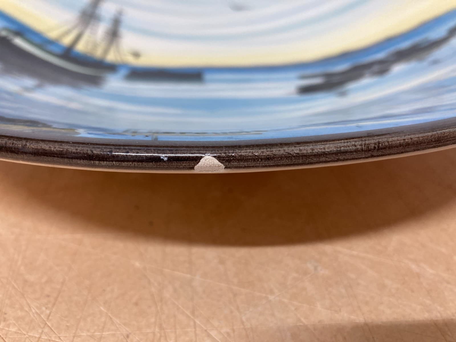 Veduta Marina Con Barche Piatto In Ceramica Colonnata Firmato