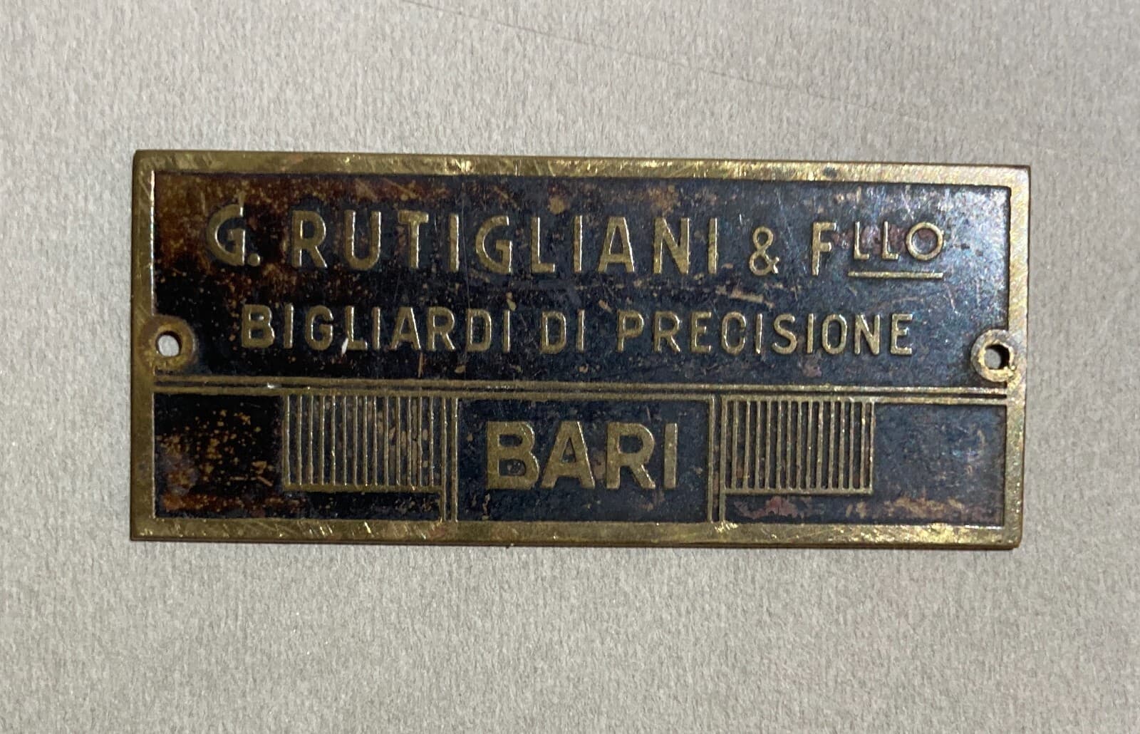 Puglia, Bari: Biliardi Di Precisione, Targhetta Pubblicitaria Ditta Rutigliani
