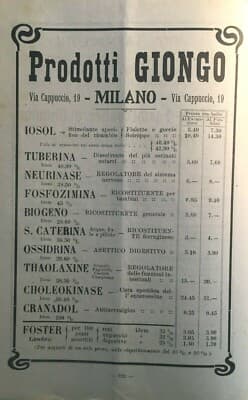 Medicina, Farmacia E Chimica Farmaceutica: Pubblicità Giongo E Lepetit, Milano, 1921