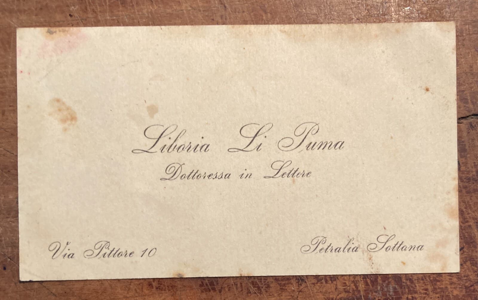 Sicilia, Petralia Sottana: Antico Biglietto Da Visita Liboria Li Puma
