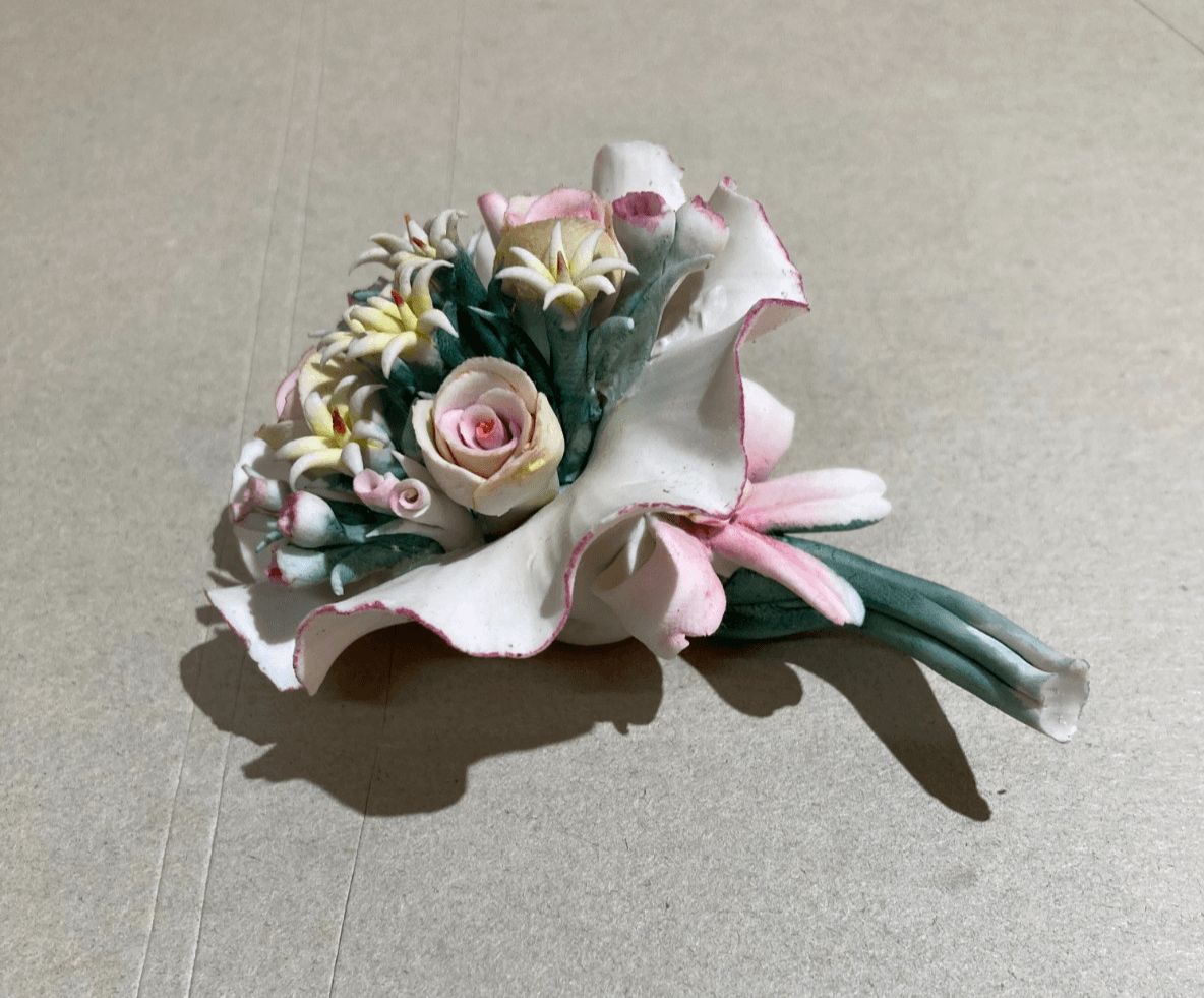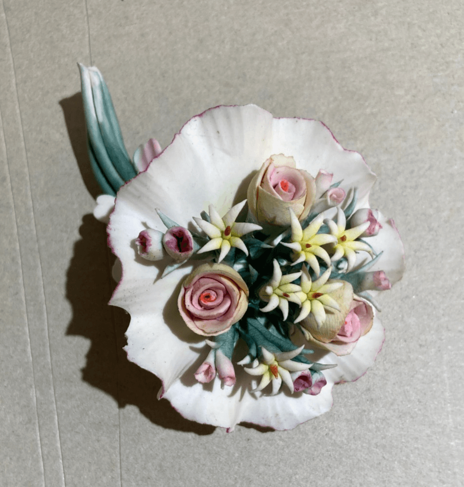 Grazioso Soprammobile: Piccola Scultura In Porcellana, Mazzo Di Fiori, Capodimonte