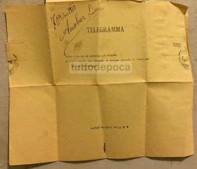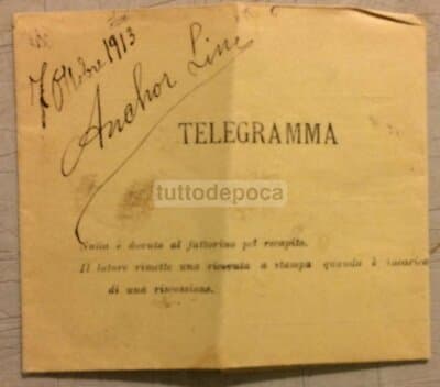 Emigrazione Napoli New York, Anchor Line, Piroscafo Calabria: Antico Telegramma (1913)