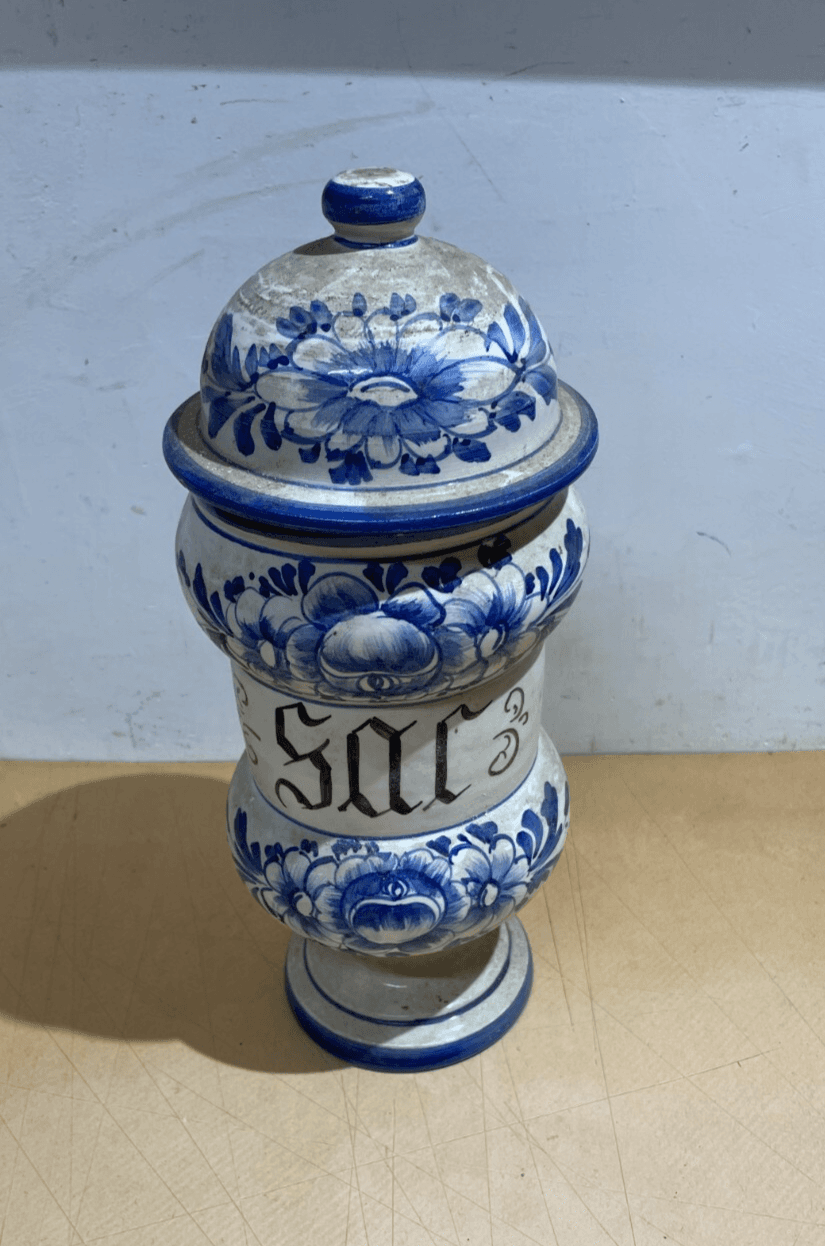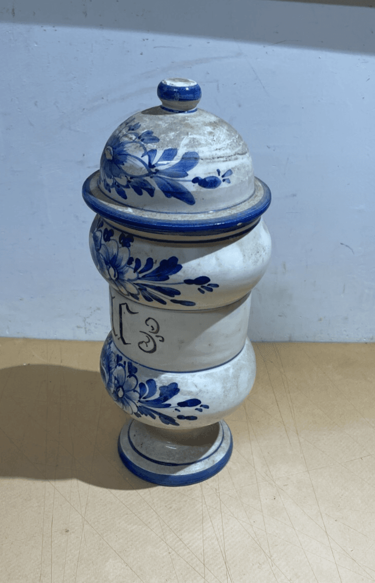 Soprammobile Decorativo In Ceramica A Forma Di Albarello Da Farmacia