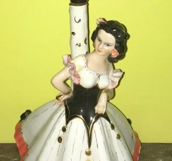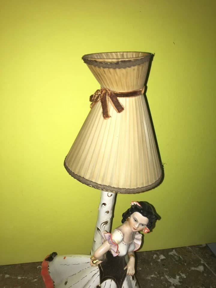 Artistica Scultura In Ceramica Girardi: Lampada Decorativa d'Epoca, Ballo E Danza