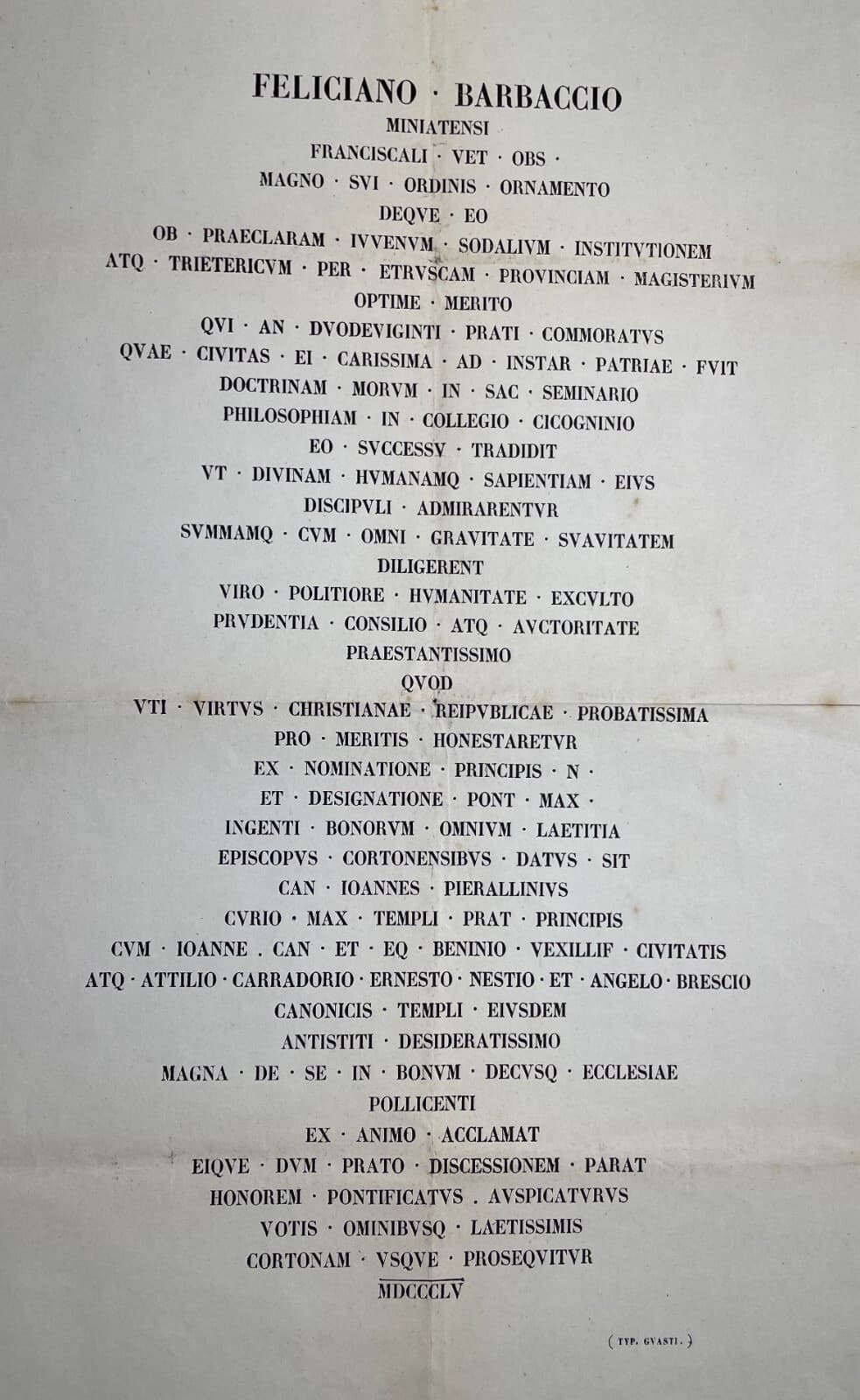 Toscana San Miniato Cortona Feliciano Barbaccio Antico Foglio Volante 1855